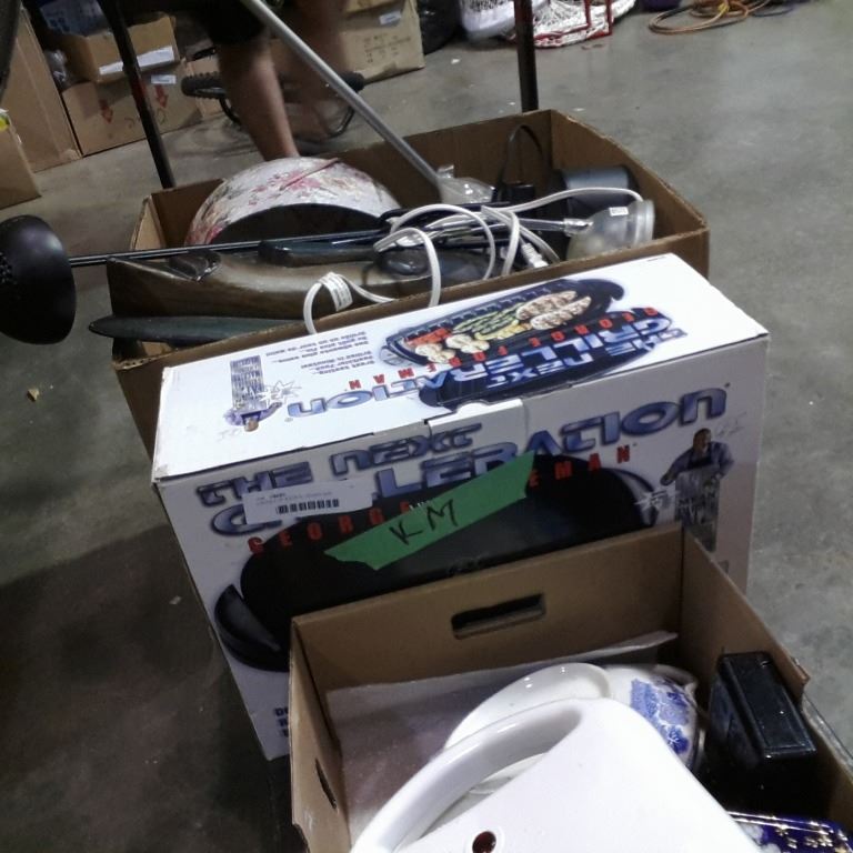 2 BOXES OF ESTATE GOODS AND GRILLERATION GRILL