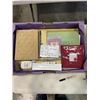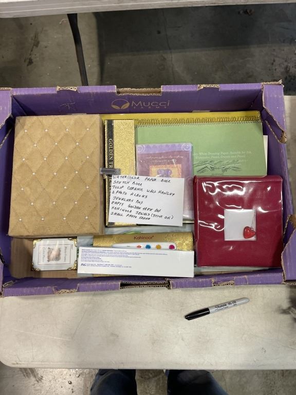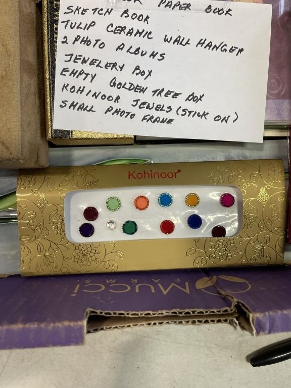 2 BOXES OF ESTATE GOODS - POTS, JEWLLERY CASES, AREA CARPET, ETC