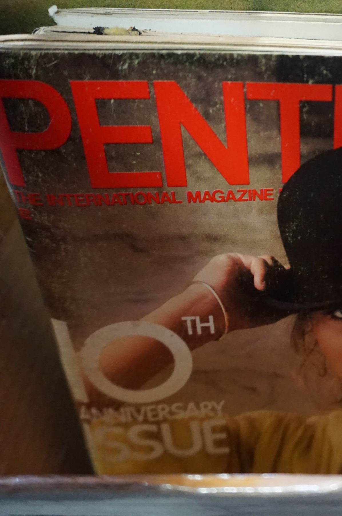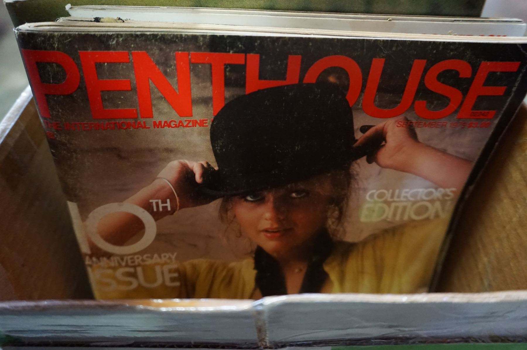 2 BOXES OF GIFT BAGS AND COLLECTORS GENTLEMAN MAGAZINES
