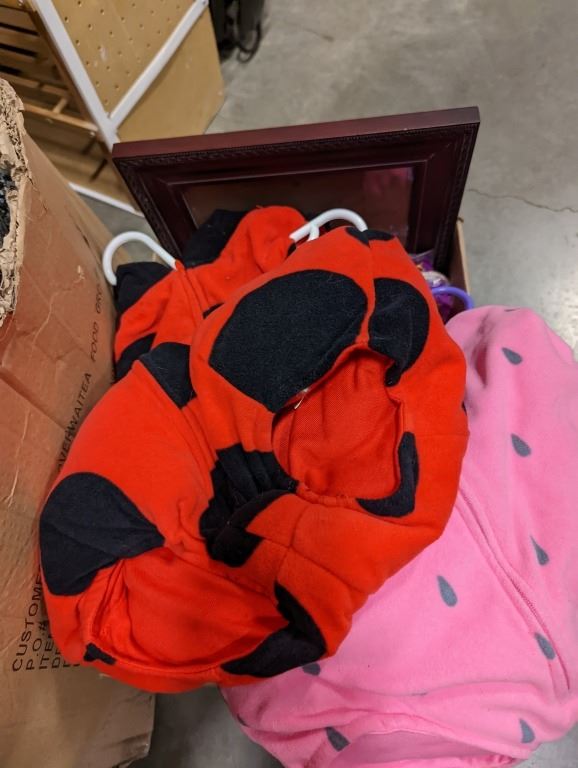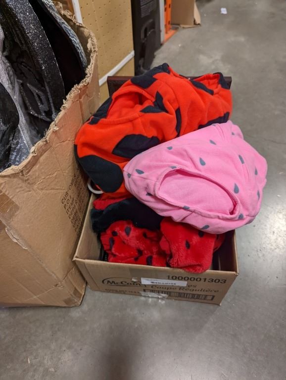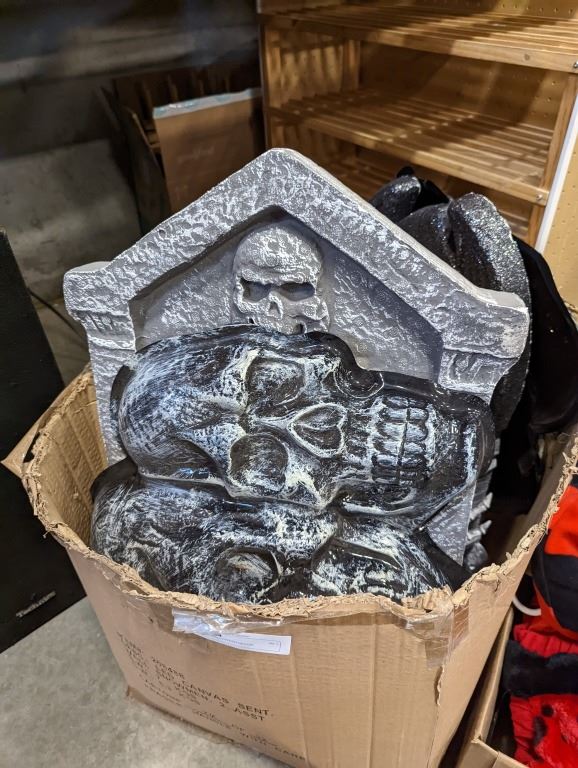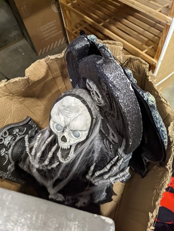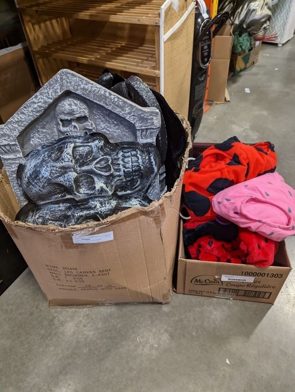 2 BOXES OF HALLOWEEN DECOR, COSTUMES AND LOOT BAGS
