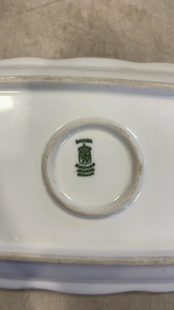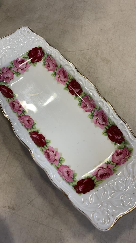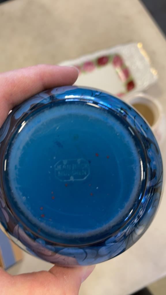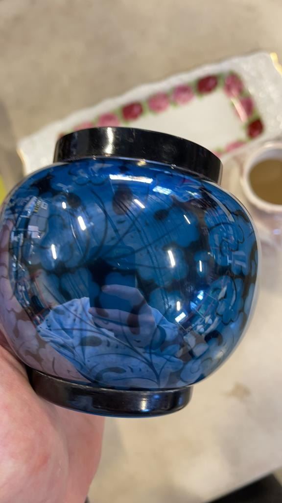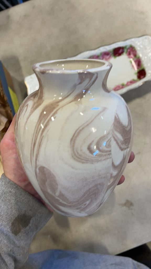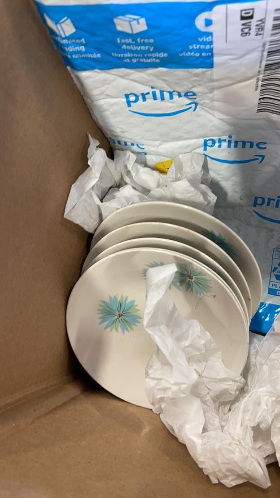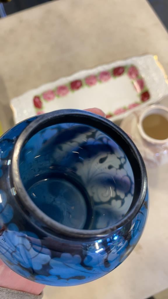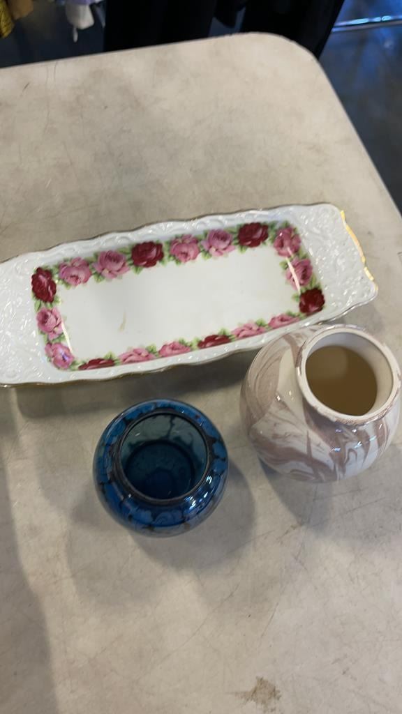 2 BOXES OF IRONSTONE DISHES, COOKIE JAR AND MT ST HELENS ASHWARE JAR