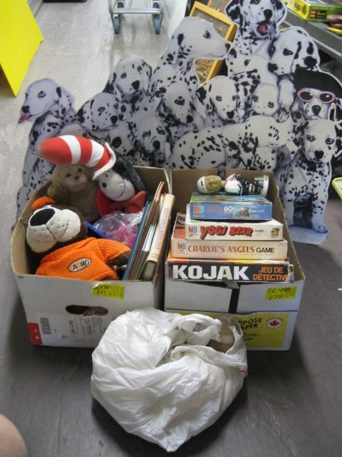 2 BOXES OF MISC. GAMES, STUFFED ANIMALS, BOOKS, ETC.