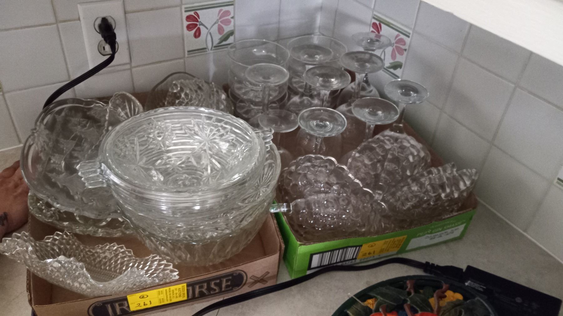 2 BOXES OF MISC. GLASSWARE, DISHES, BOWLS, WINEGLASSES, ETC.