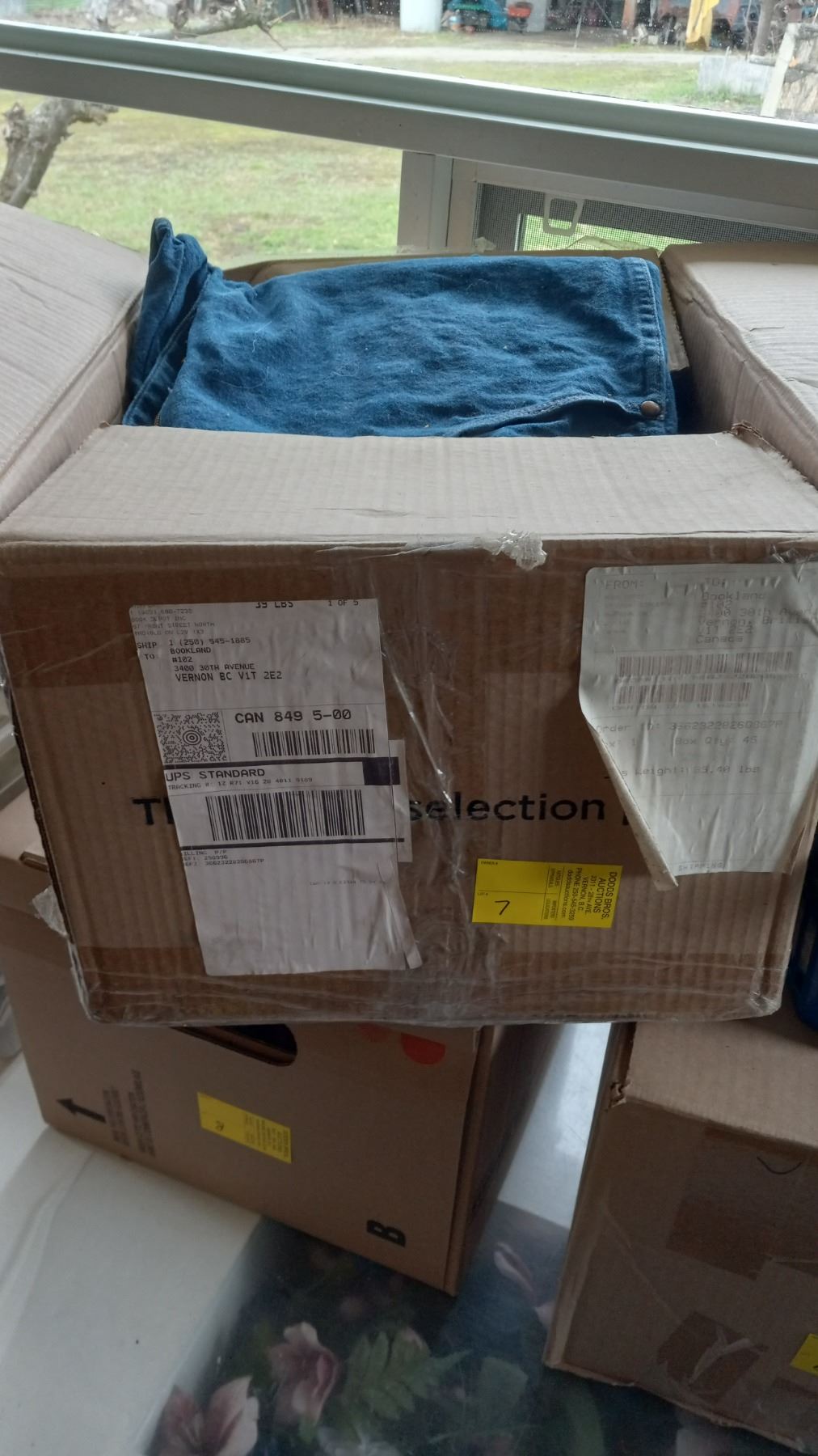 2 BOXES OF MISC. PANTS, JEANS, ETC.