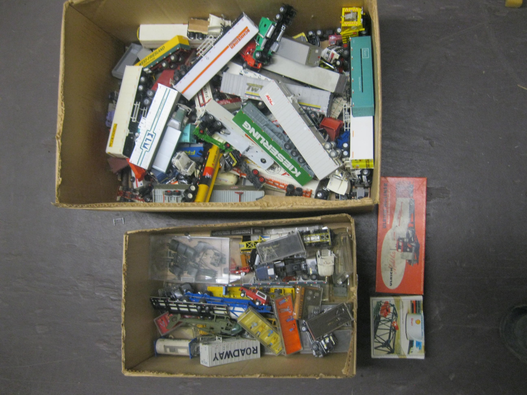 2 BOXES OF MISC. TRUCKS, PEOPLE, HELICOPTERS, TRAILERS, ETC. FOR HO