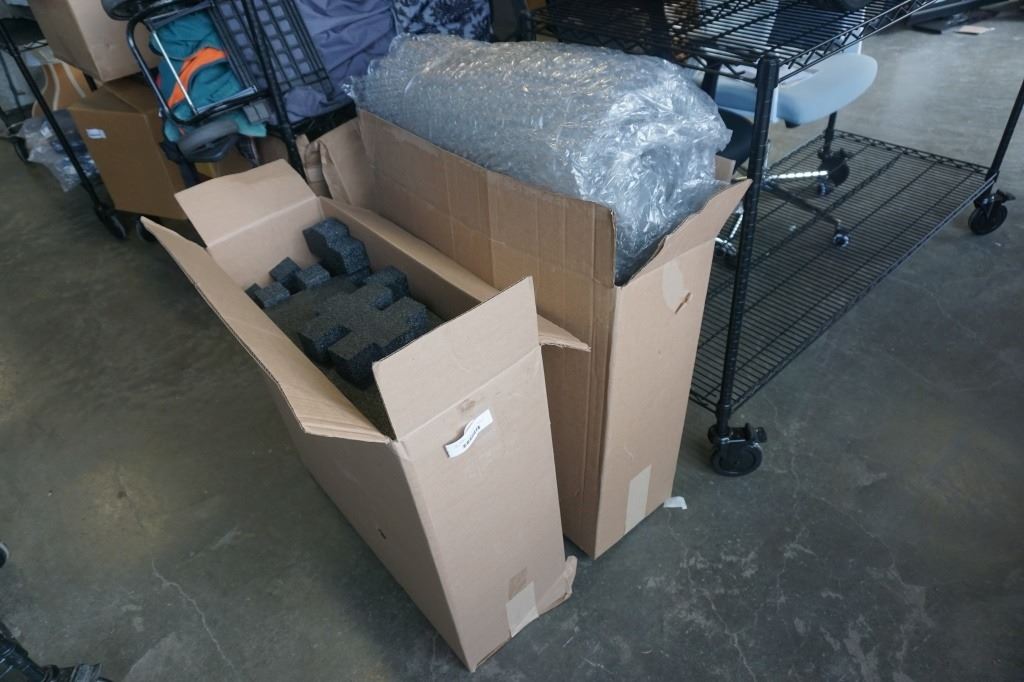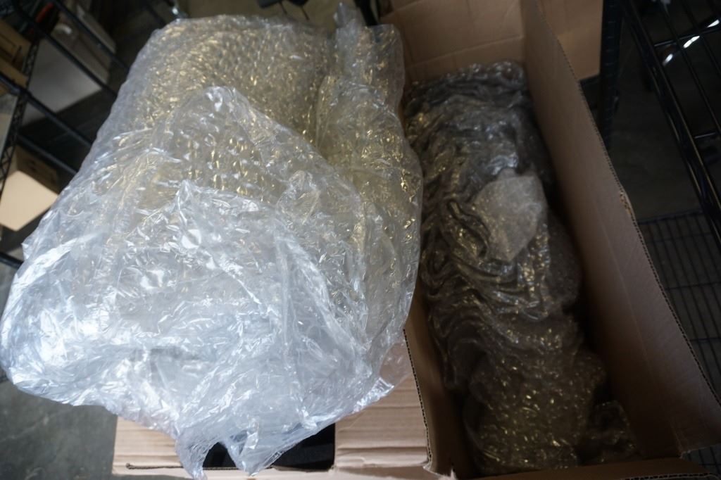 2 BOXES OF PACKING MATERIAL - BUBBLE WRAP AND INTERLOCKING FOAM PIECES