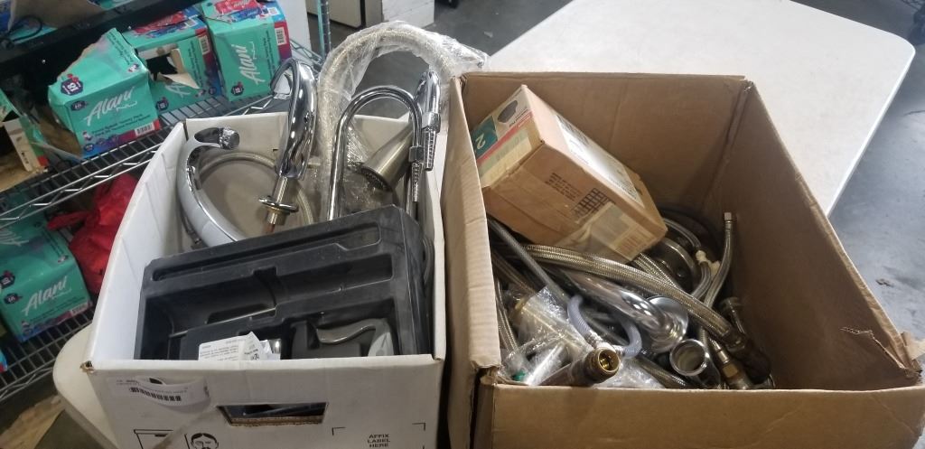 2 BOXES OF PLUMBING SUPPLIES, HOSES, ETC