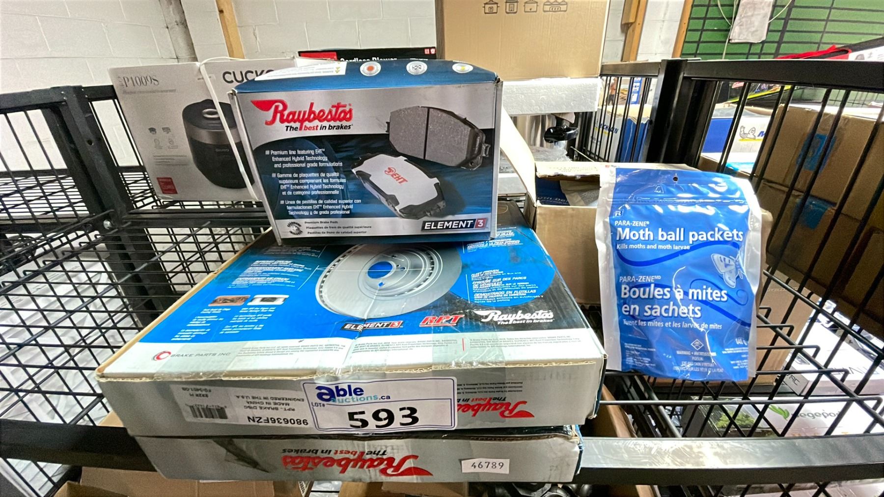 2 BOXES OF RAYBESTAS DISC BRAKES, 1 BOX OF RAYBESTAS BRAKE PADS & BOX OF MOTH BALL PACKETS