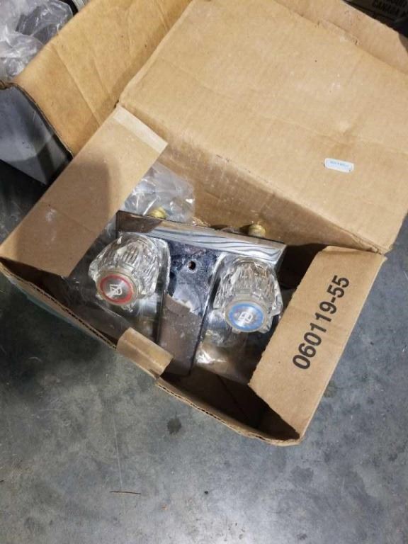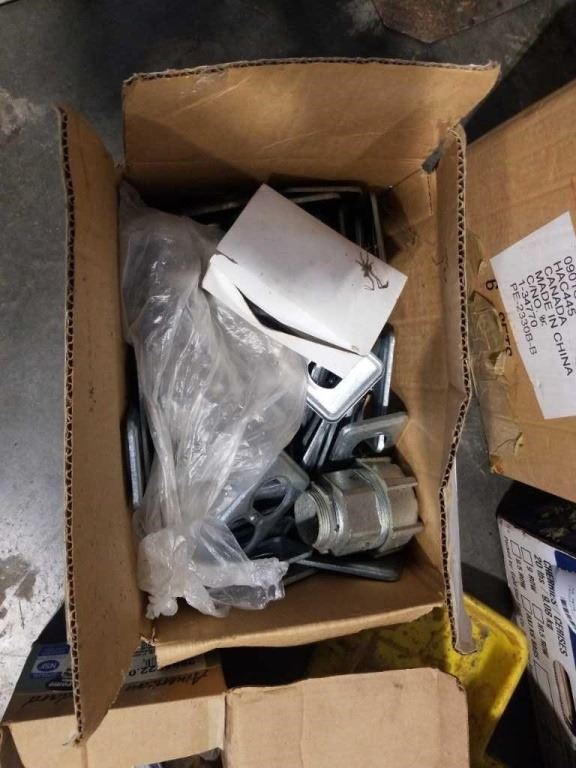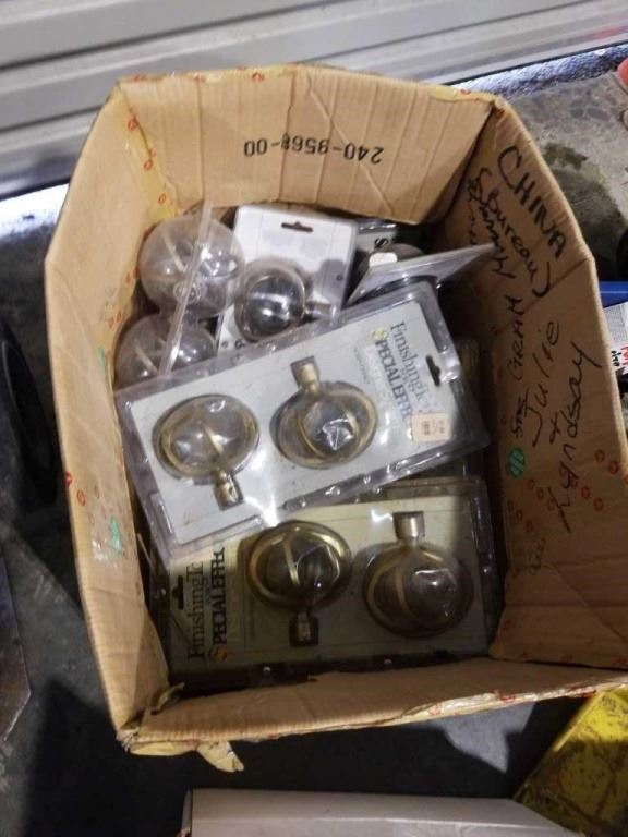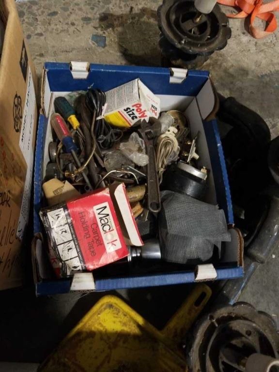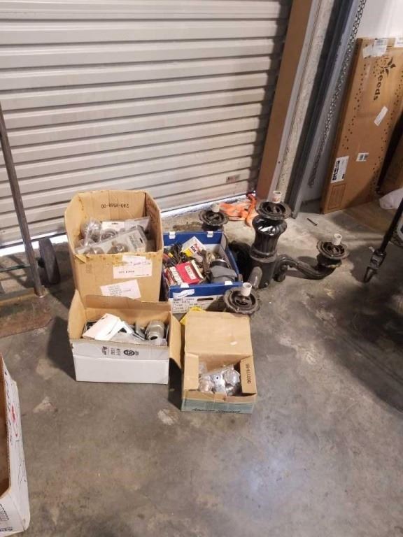 2 BOXES OF SHOP SUPPLIES, HARDWARE, LAMP POST LIGHT