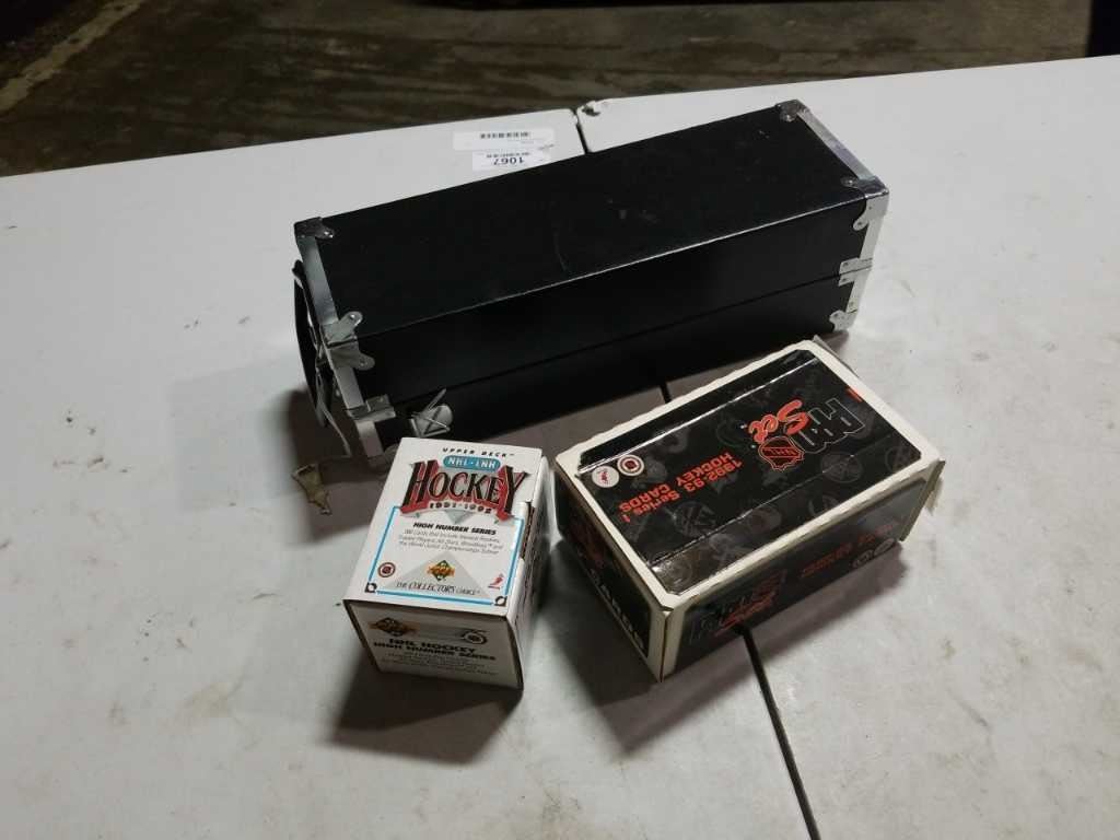 2 BOXES OF SPORTS CARDS AND HARD CASE