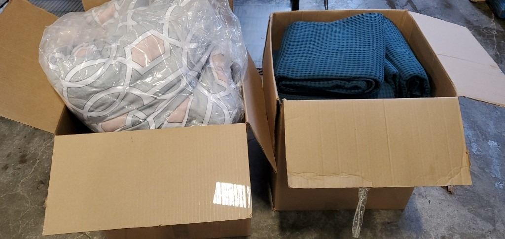 2 BOXES OF THROW BLANKETS, COMFORTER AND QUILT