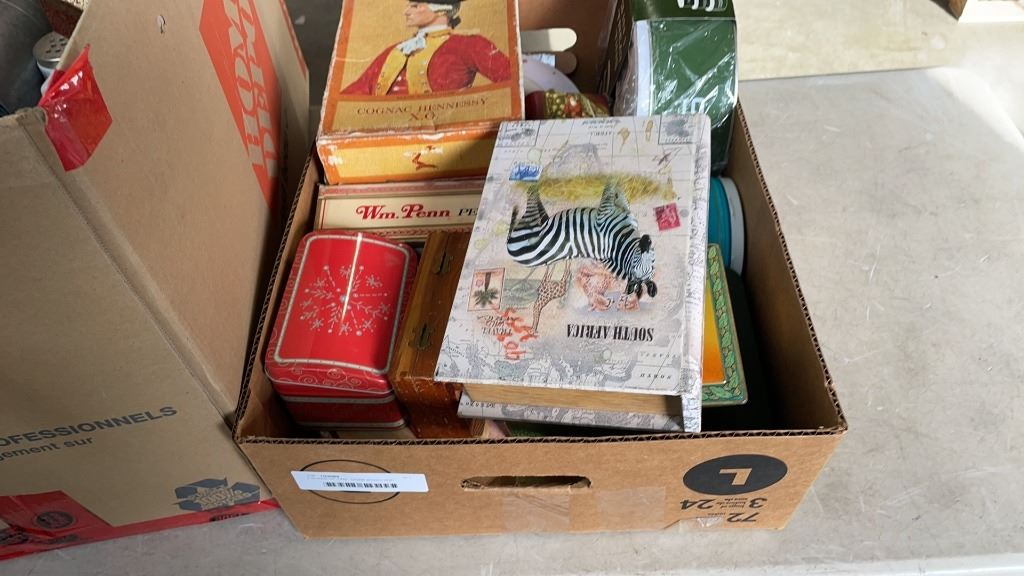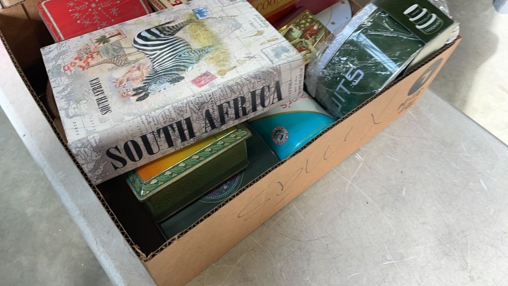 2 BOXES OF TINS, CIGAR BOXES AND CIGARETTE TINS