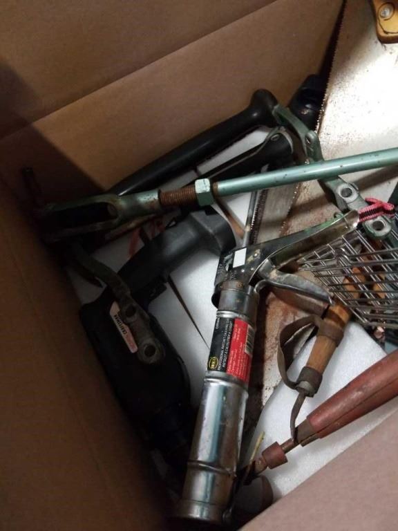 2 BOXES OF TOOLS AND CABIN ITEMS