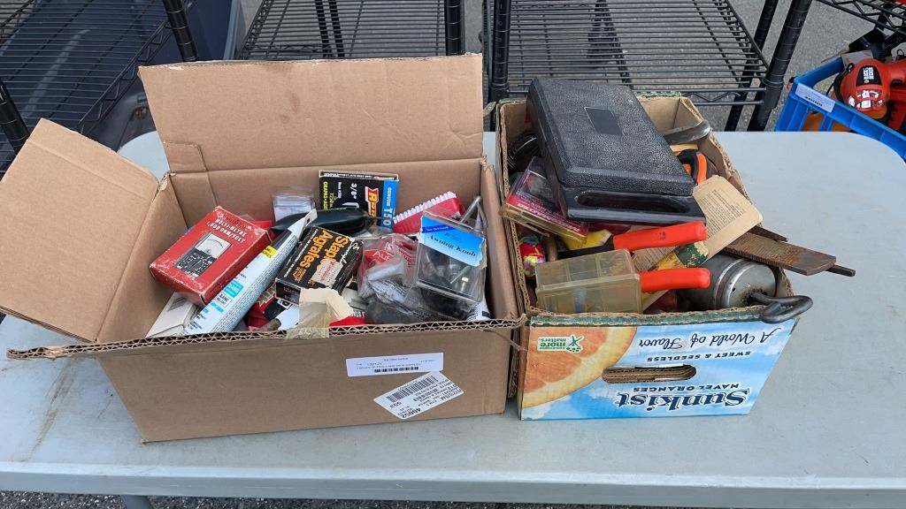 2 BOXES OF TOOLS AND SHOP SUPPLIES