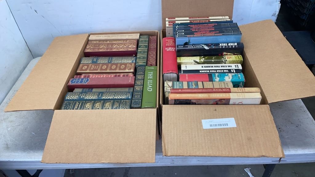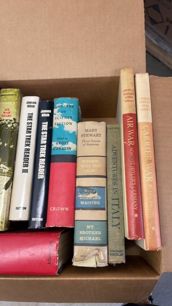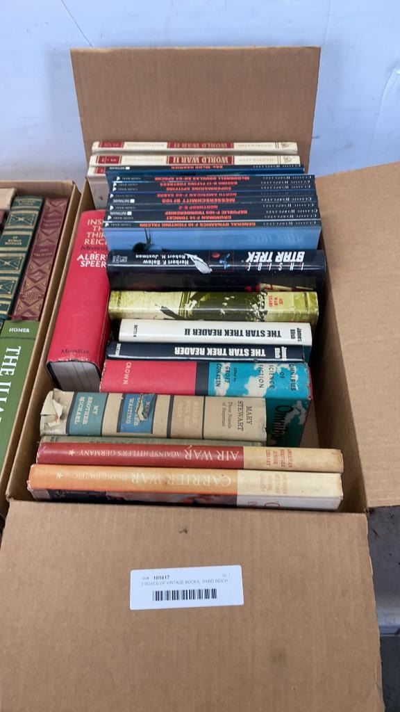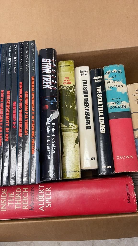2 BOXES OF VINTAGE BOOKS, THIRD REICH MEMOIRS, STAR TREK READER, AVIATOR AND MORE ONE FROM 1942