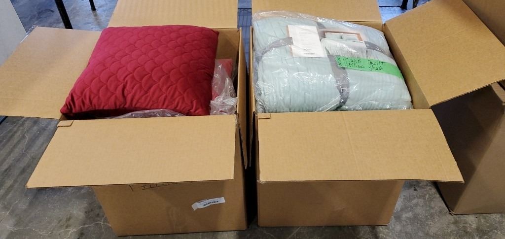 2 BOXES THROW PILLOWS, TWIN SIZE QUILT