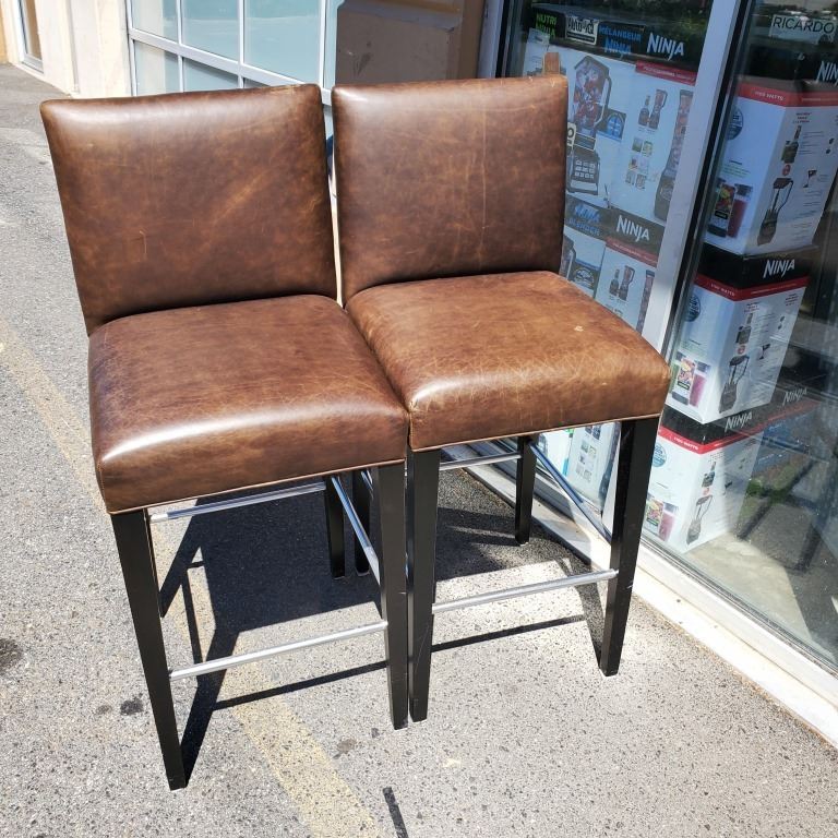 2 BROWN BAR HEIGHT LEATHER CHAIRS