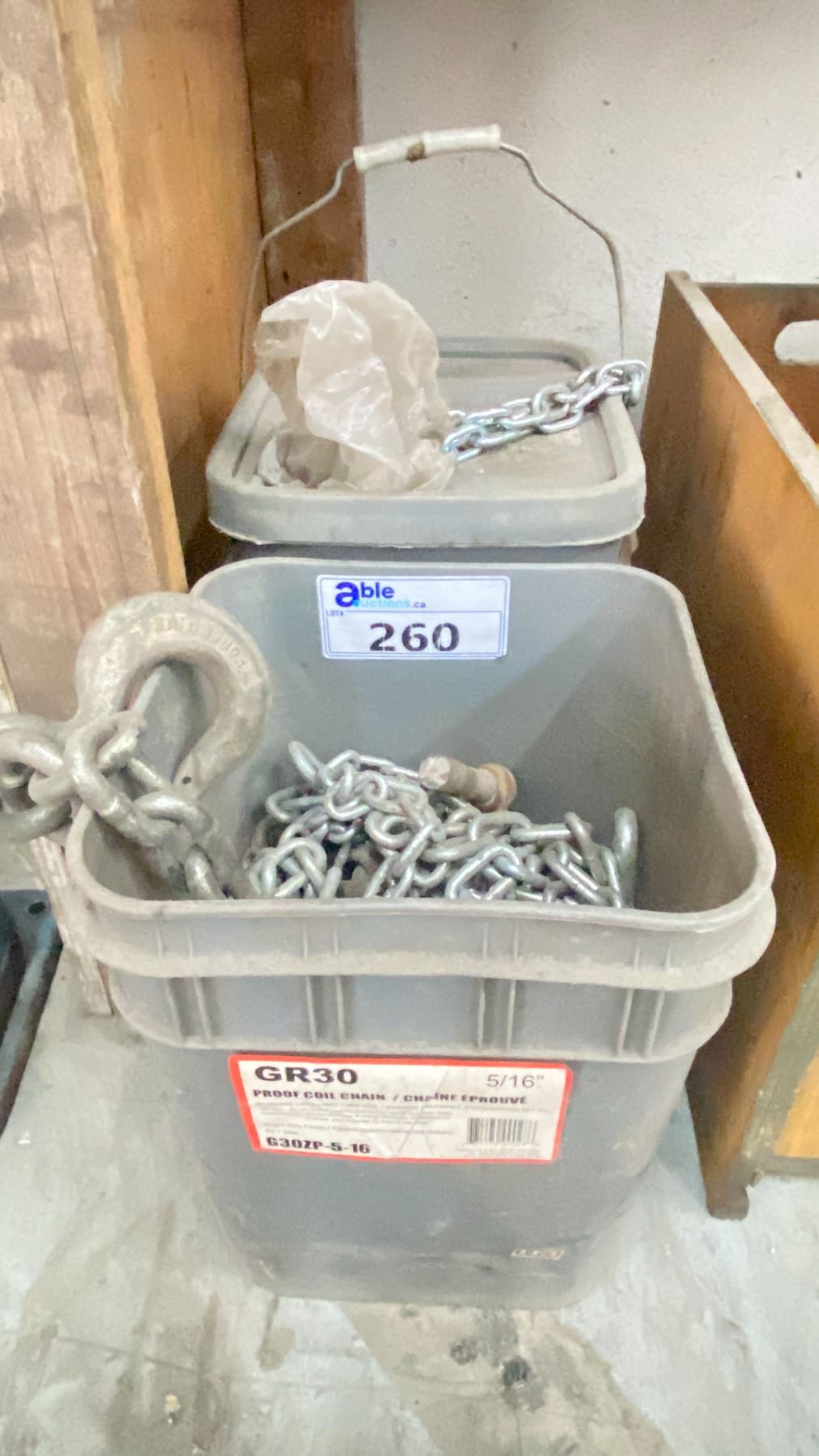 2 BUCKETS OF CHAINES WITH METAL HOOKS