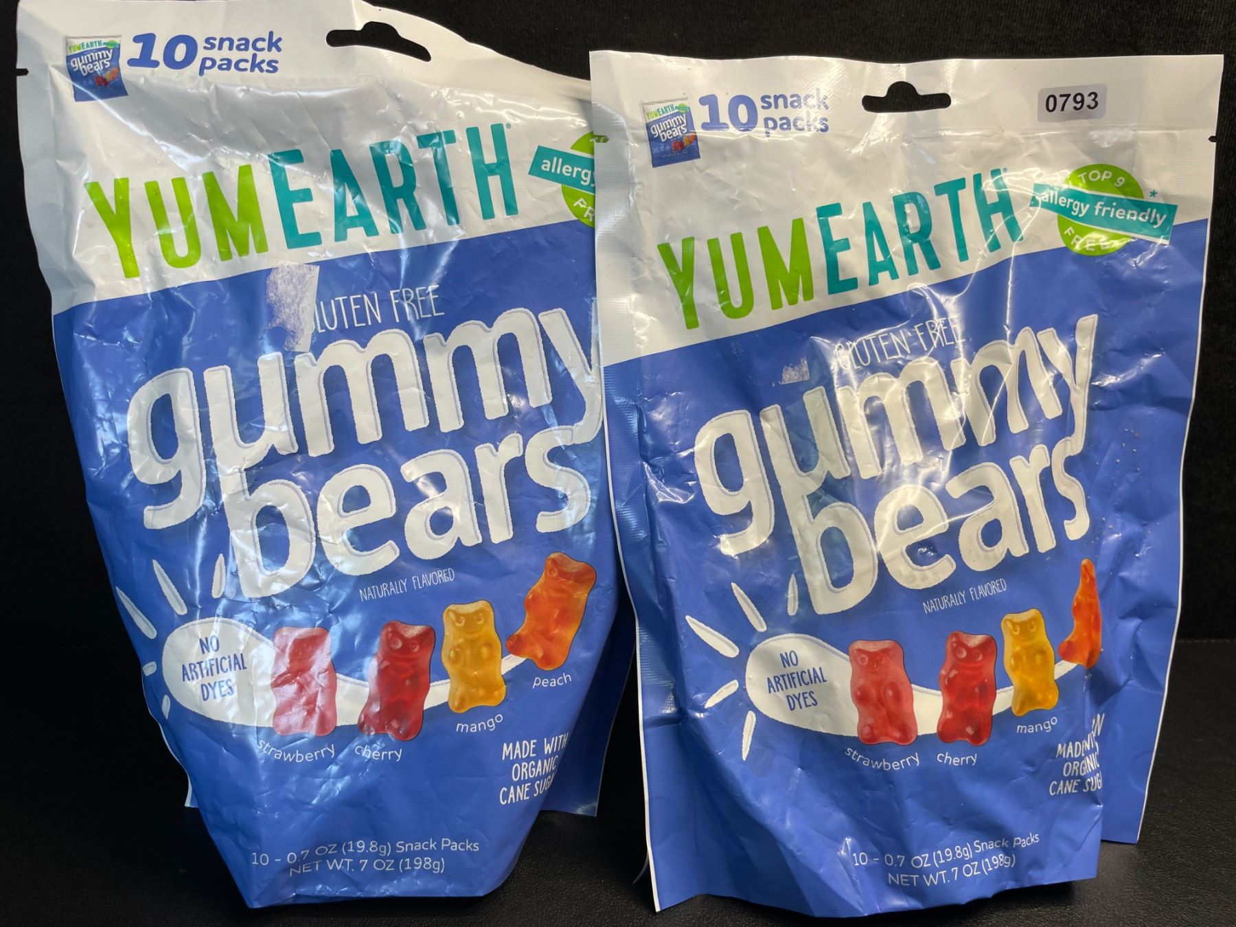 2 Bags of YumEarth Organic Gluten-Free Gummy Bears - 10 Snack Packs Each - New