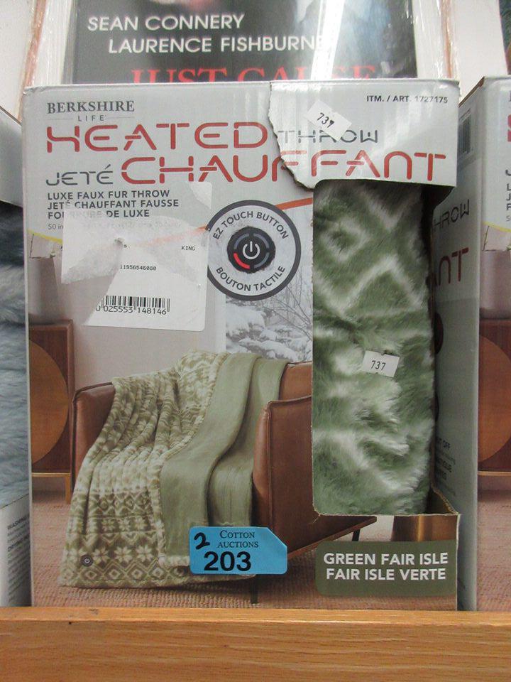 Green Fair Isle. 50" x 60"/127 cm x 152 cm. Customer returns.