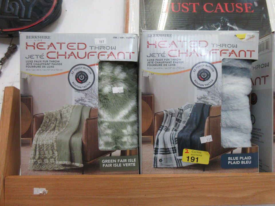 1 Green Fair Isle & 1 Light Blue Plaid. 50" x 60"/127 cm x 152 cm. Customer returns.
