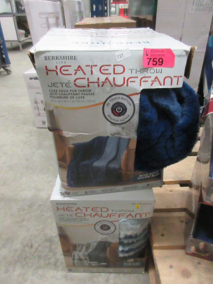1 Blue plaid and one navy blue. 50" x 60"/127 cm x 152 cm. Customer returns.