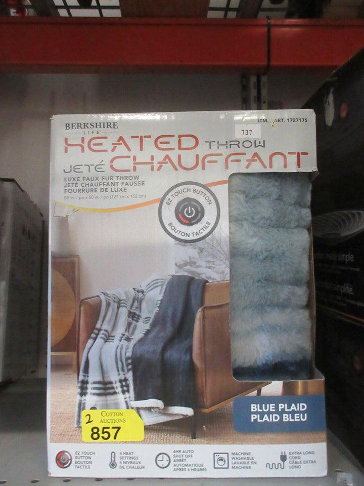 Light blue plaid. 50" x 60"/127 cm x 152 cm. Customer returns.