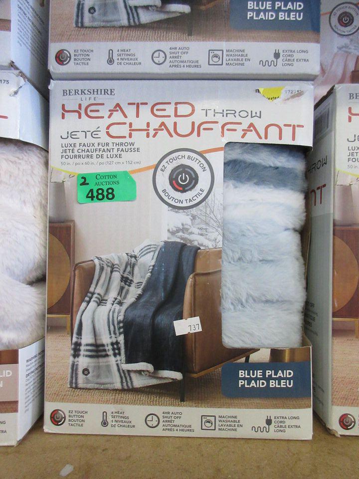 2 Blue Plaid Berkshire Faux Fur Heated Throws