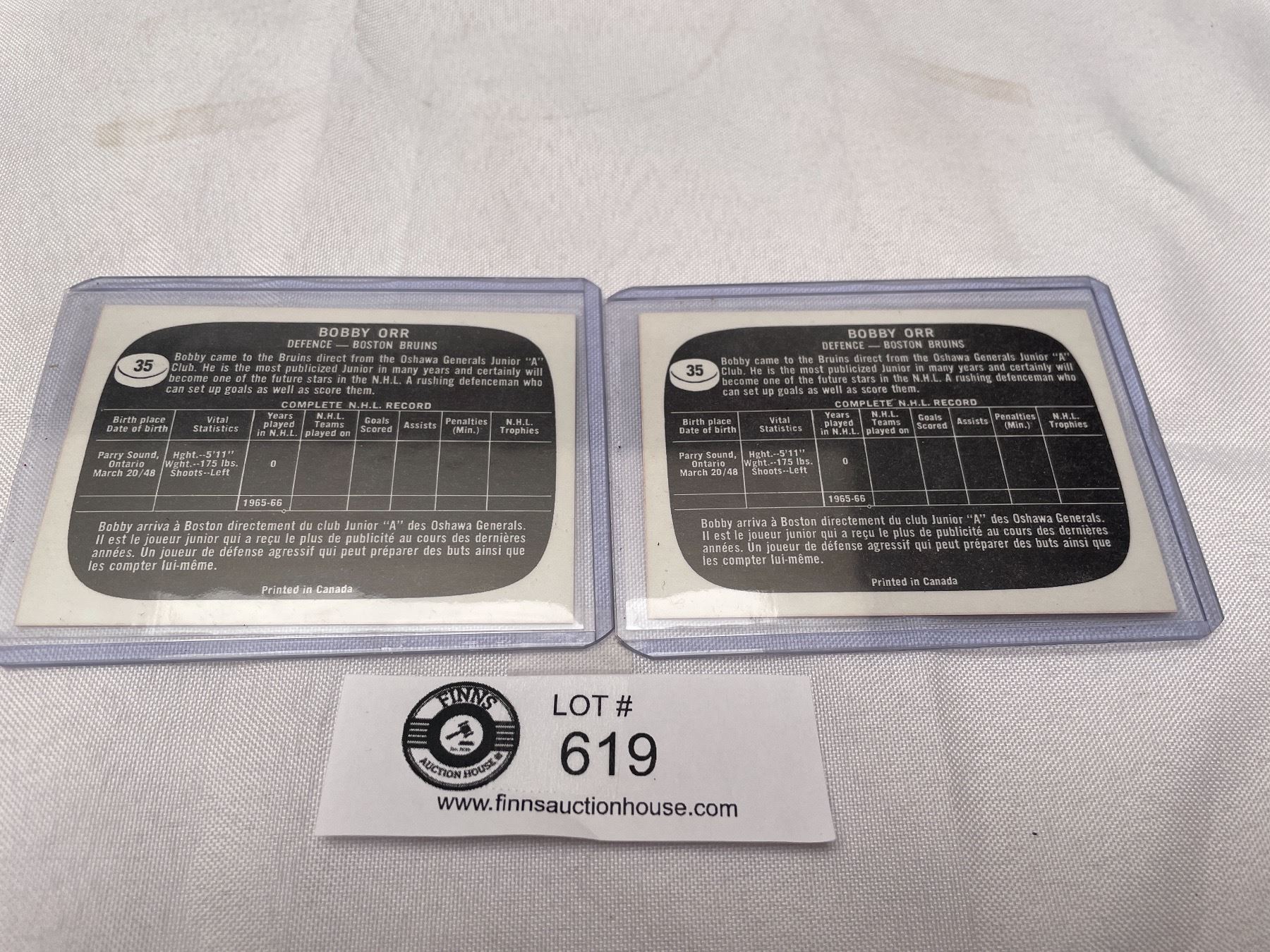 2 Bobby Orr Rookie Reprints Trading Cards
