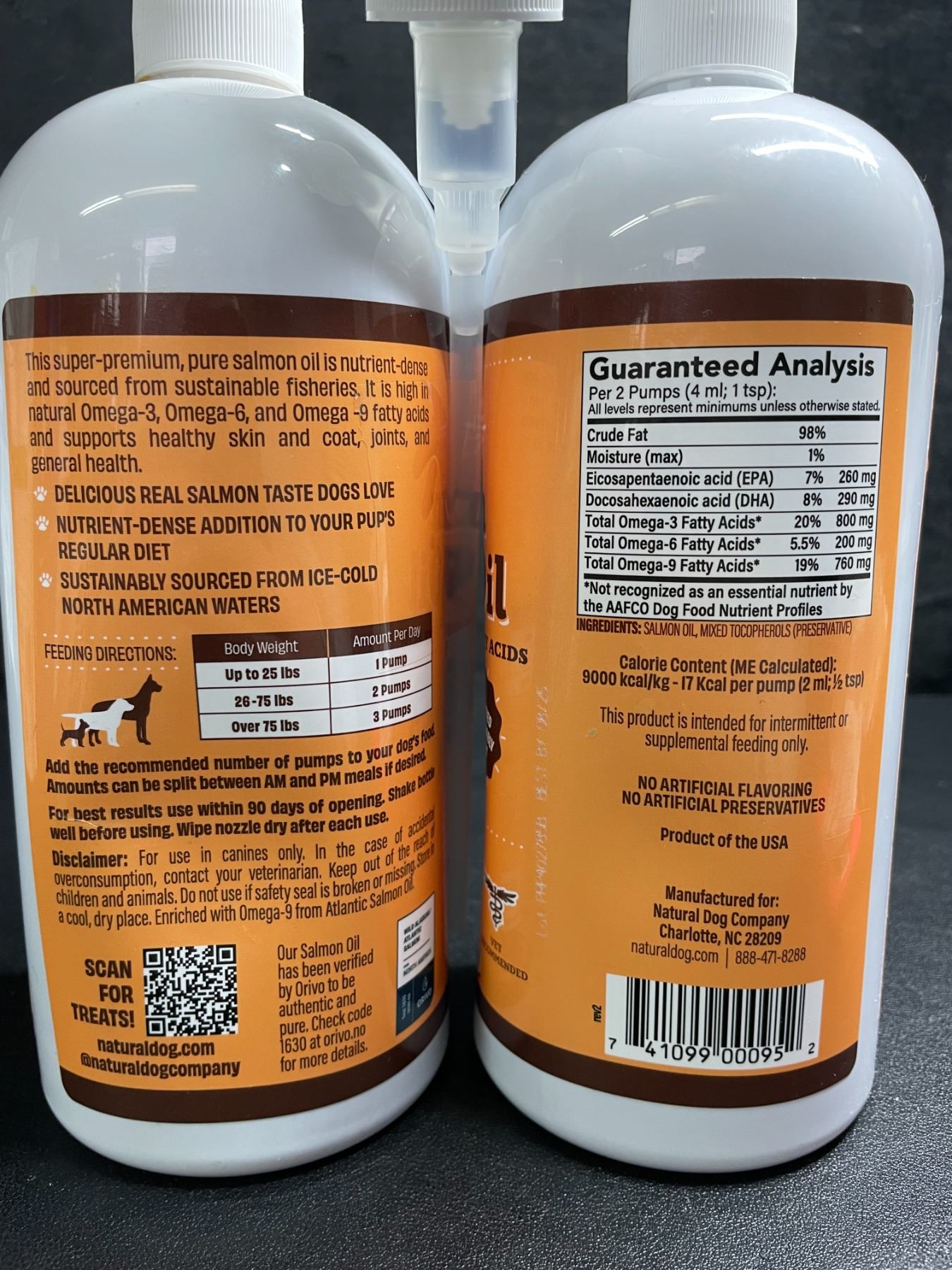 2 Bottles of Pure Wild Alaskan Salmon Oil by Natural Dog Company (946ml Each) - New