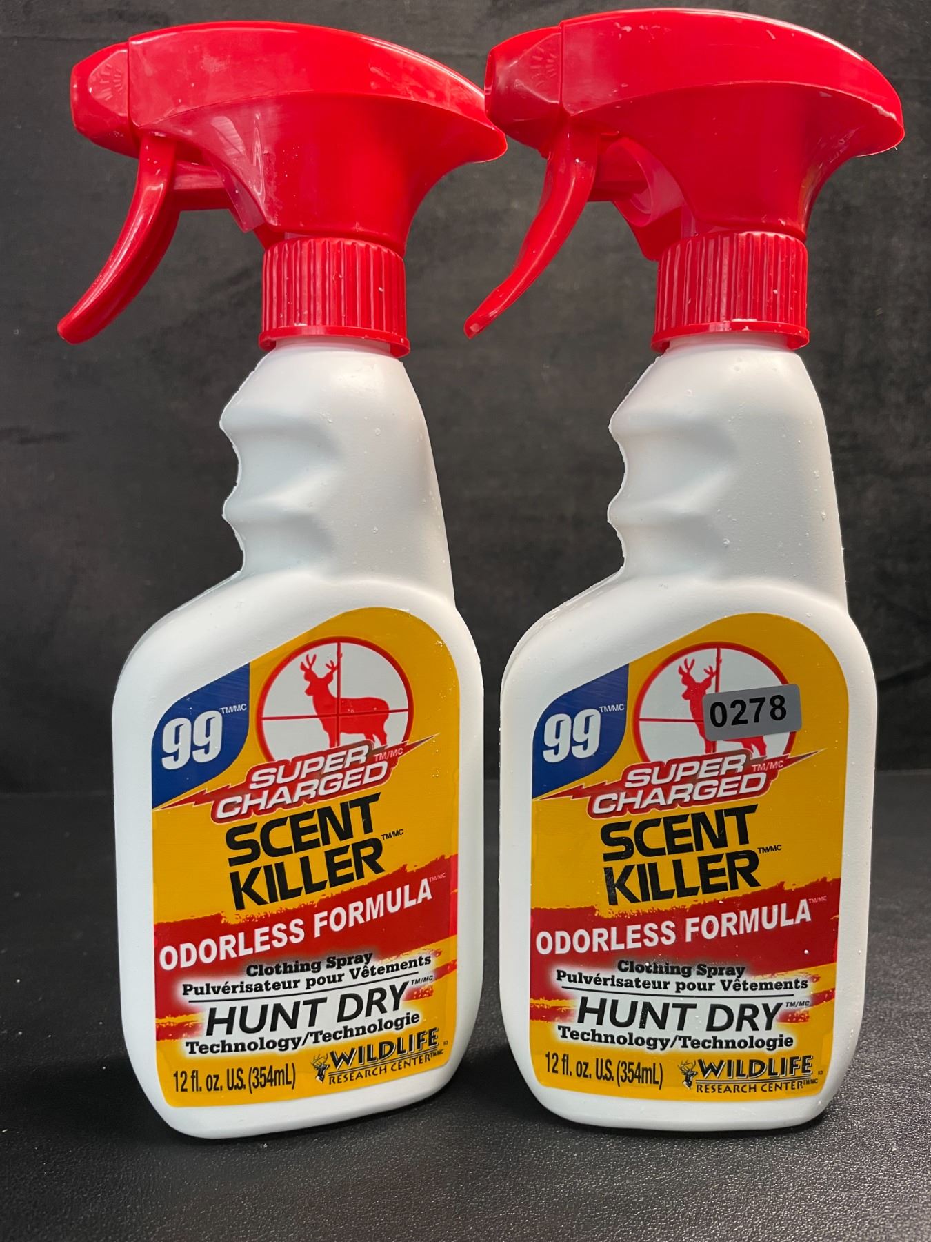 2 Bottles of Super Charged Scent Killer Hunter Clothing Spray (354ml) - New
