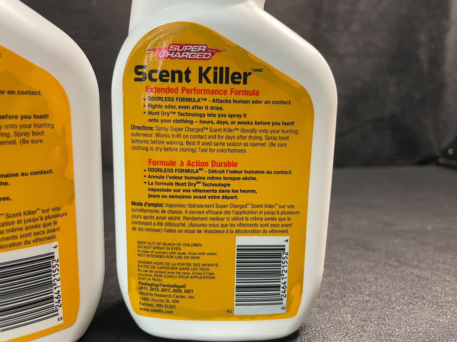 2 Bottles of Super Charged Scent Killer Hunter Clothing Spray (354ml) - New