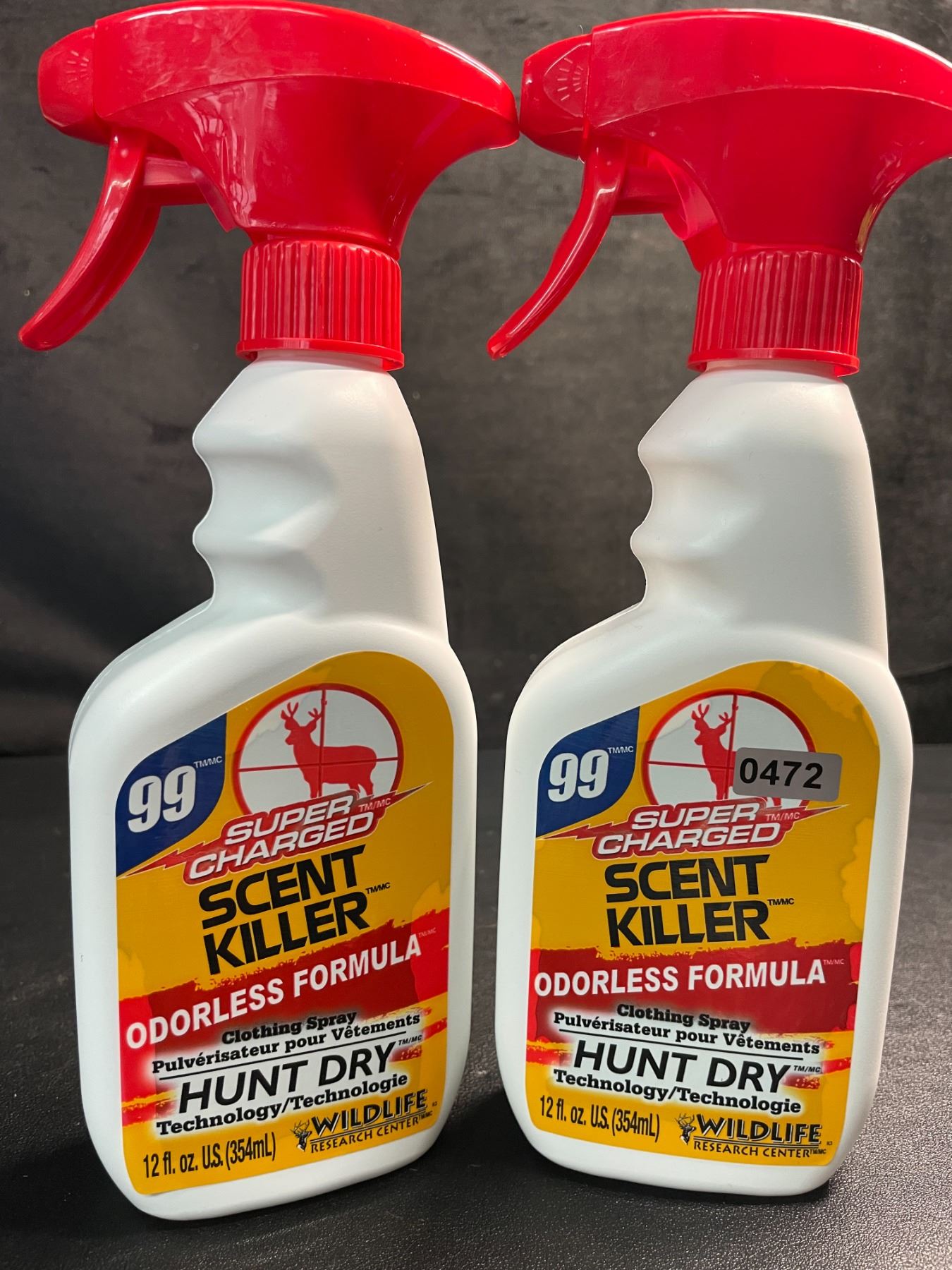 2 Bottles of Super Charged Scent Killer Hunter Clothing Spray (354ml) - New