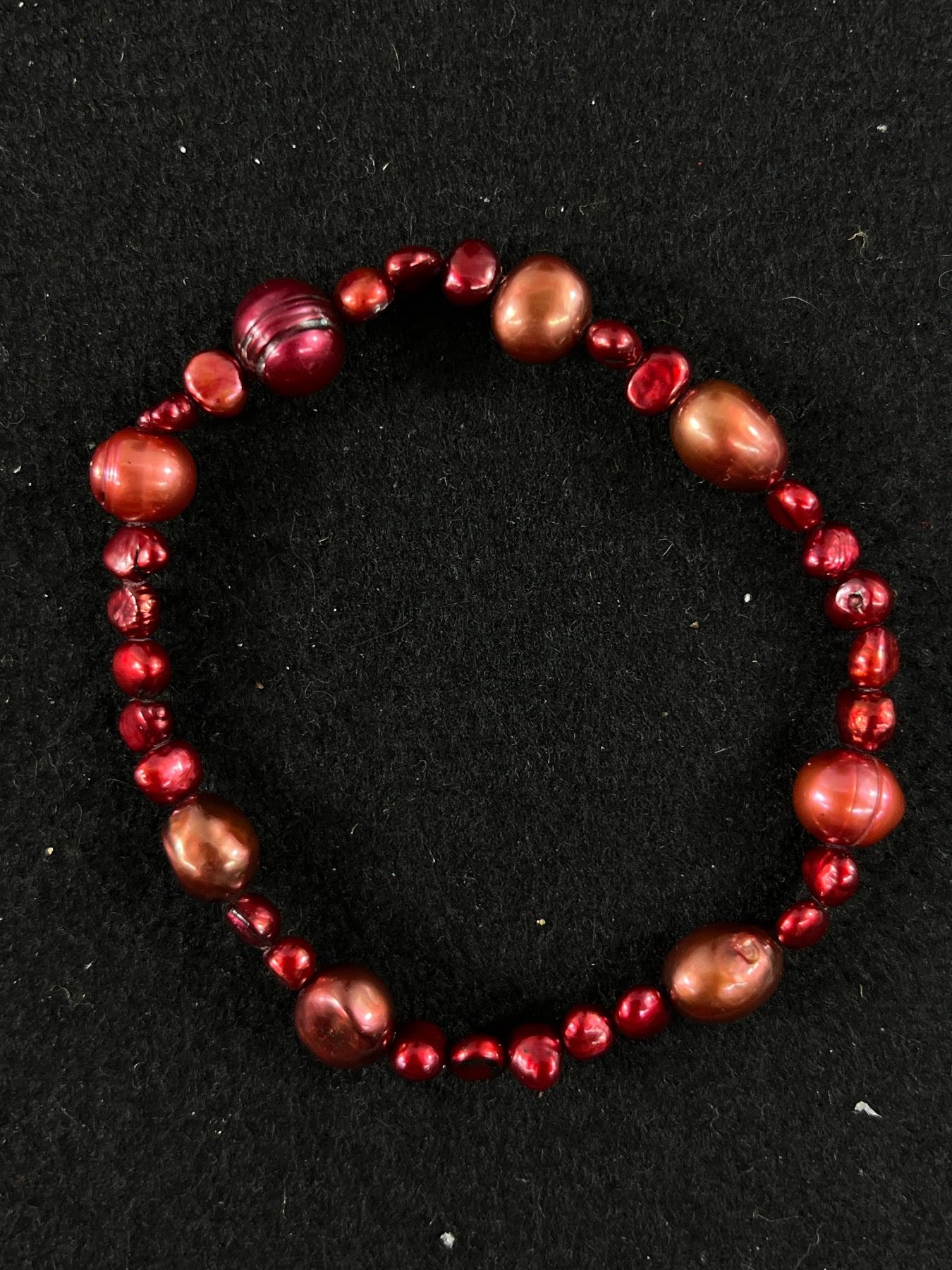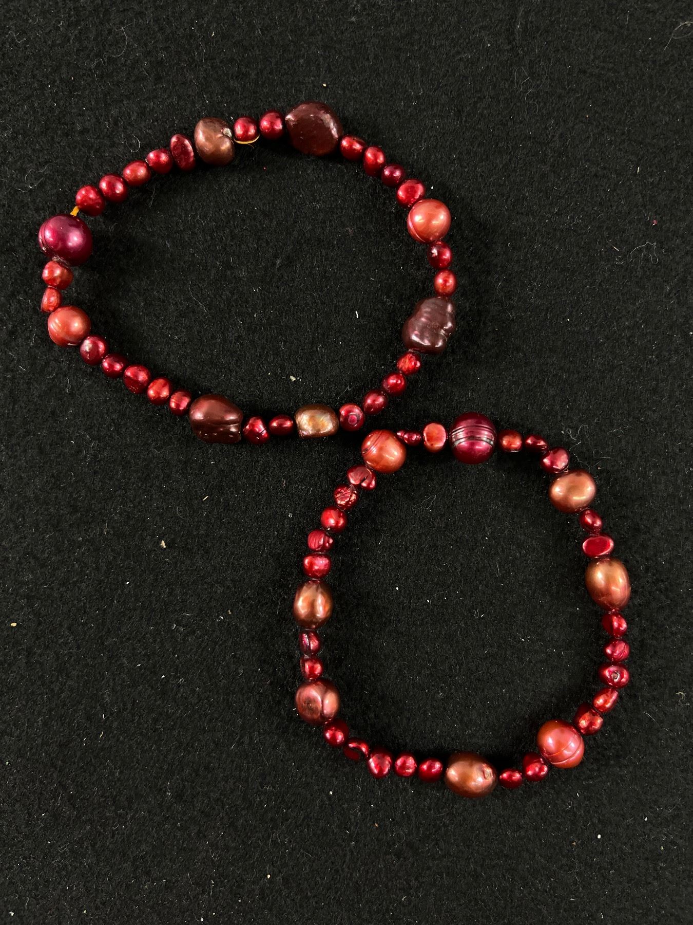 2 Bronze Colour Genuine Pearl Stretch Bracelets