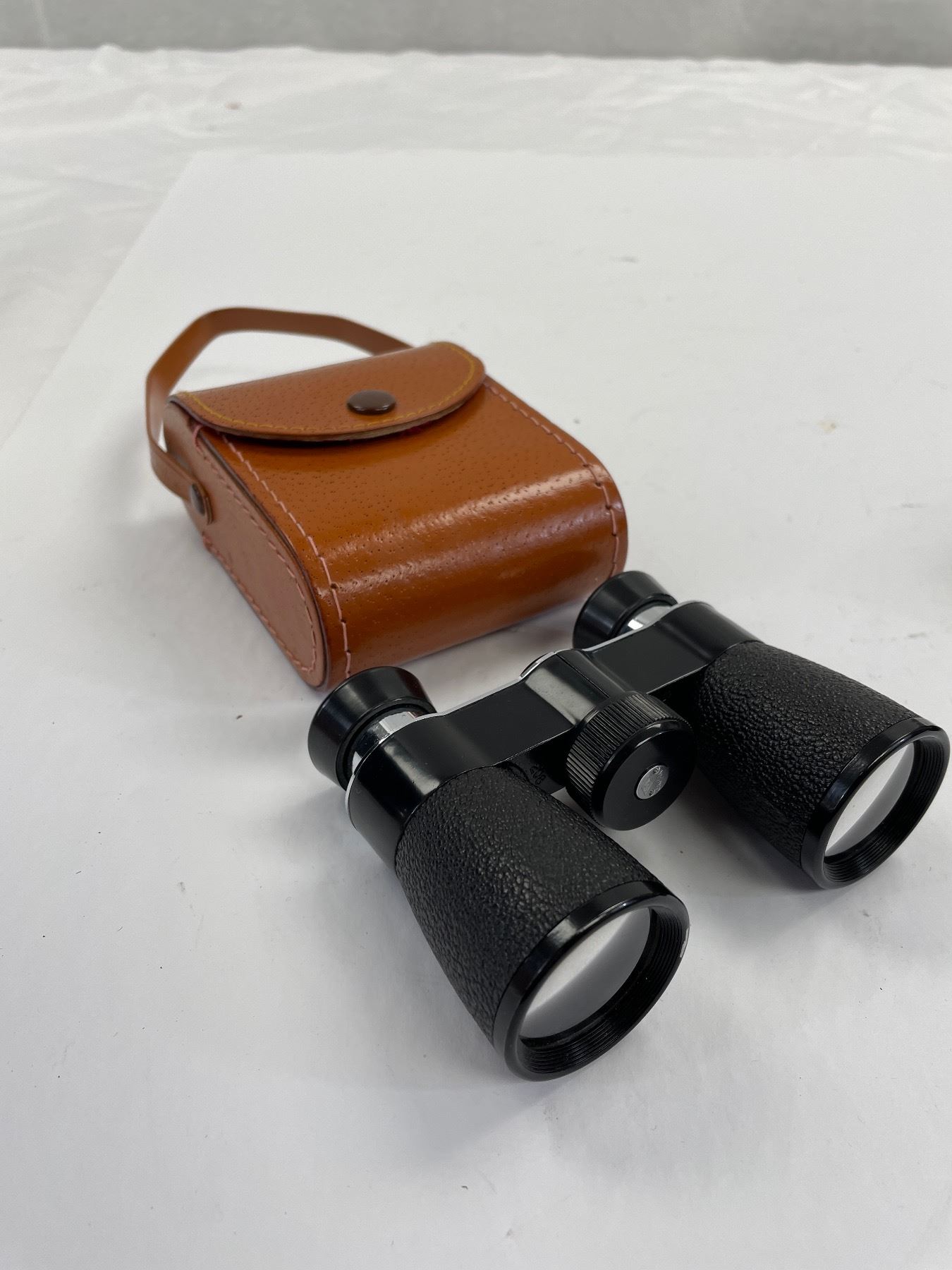 2 Bushnell Mini Field 4 x 30 Binoculars in Vintage Leather Case Well Looked After