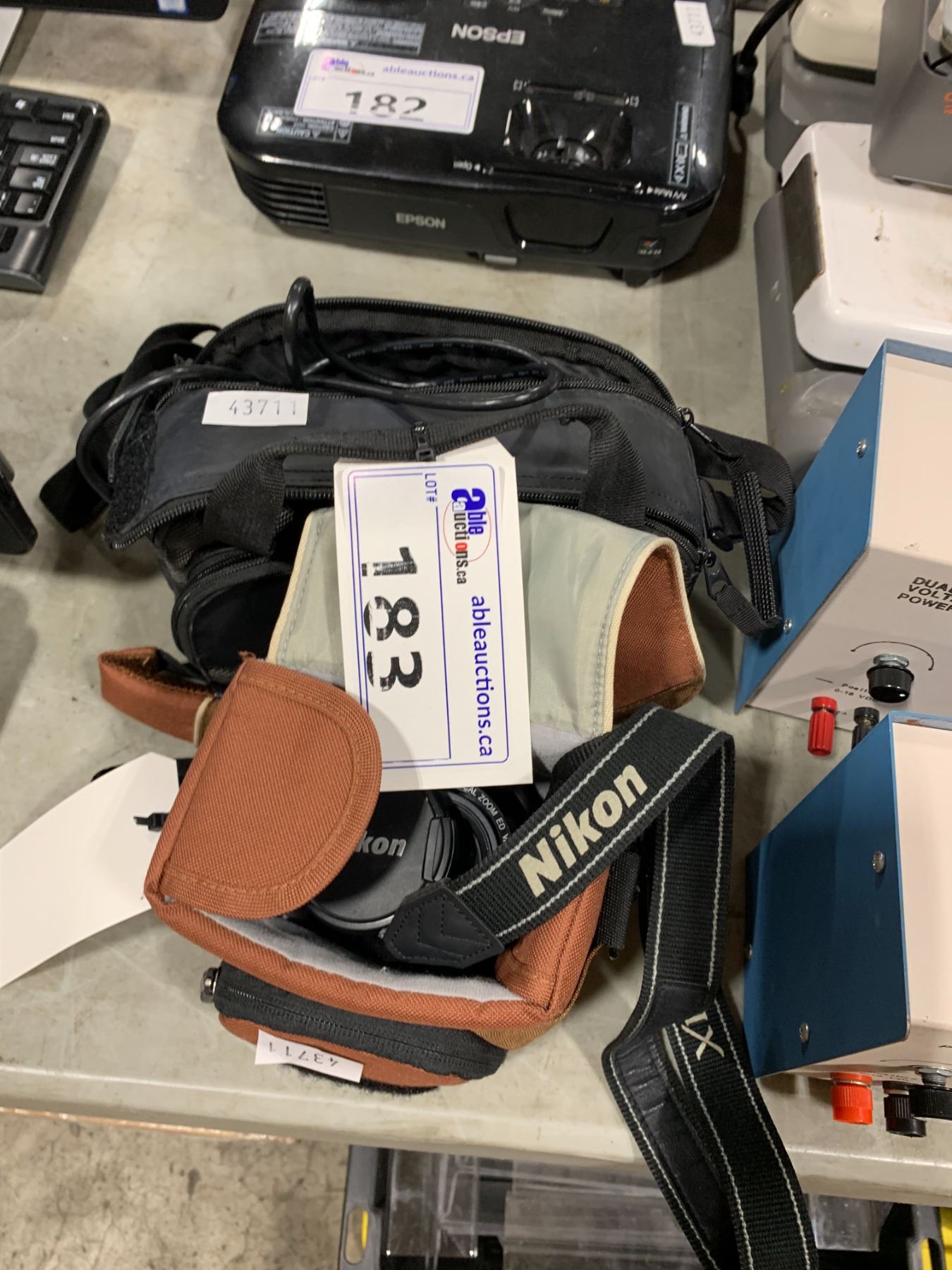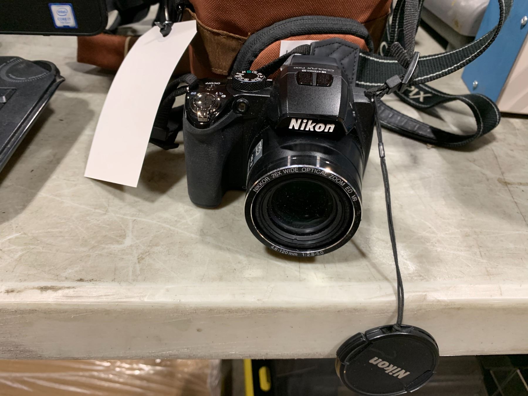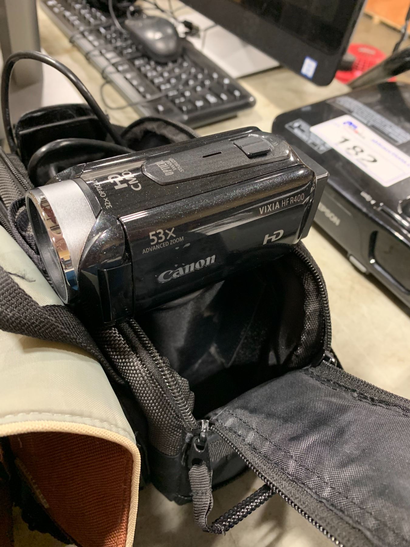 2 CAMERAS: NIKON COOLPIX P100 DIGITAL CAMERA WITH CHARGING ADAPTER IN SOFT TRANSPORT BAG & CANON VIXIA HF R400 DIGITAL CAMERA WITH CHARGING CABLE & BATTERY IN SOFT CASE