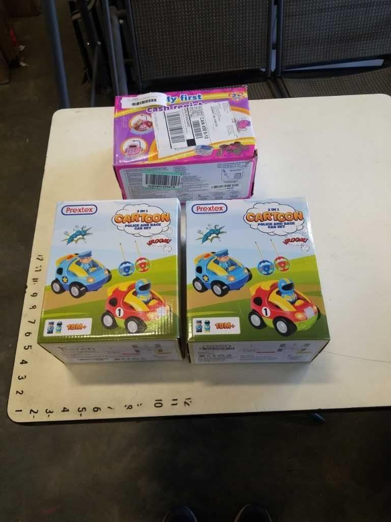 2 CARTOON POLICE AND RACE CAR SET AND MY FIRST CASH REGISTER