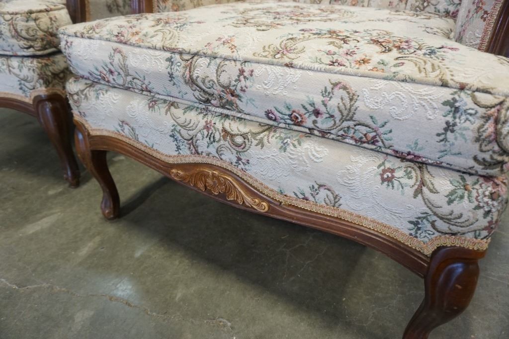 2 CARVED WOOD FRAMED ARM CHAIRS