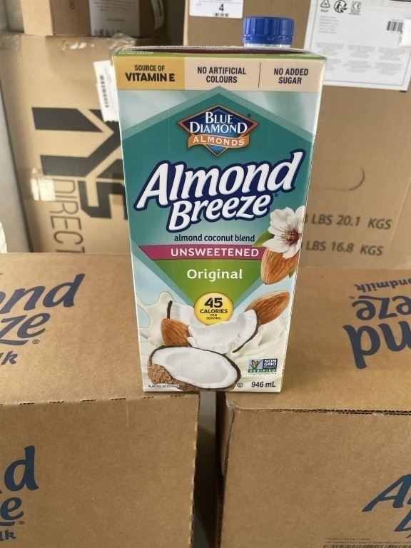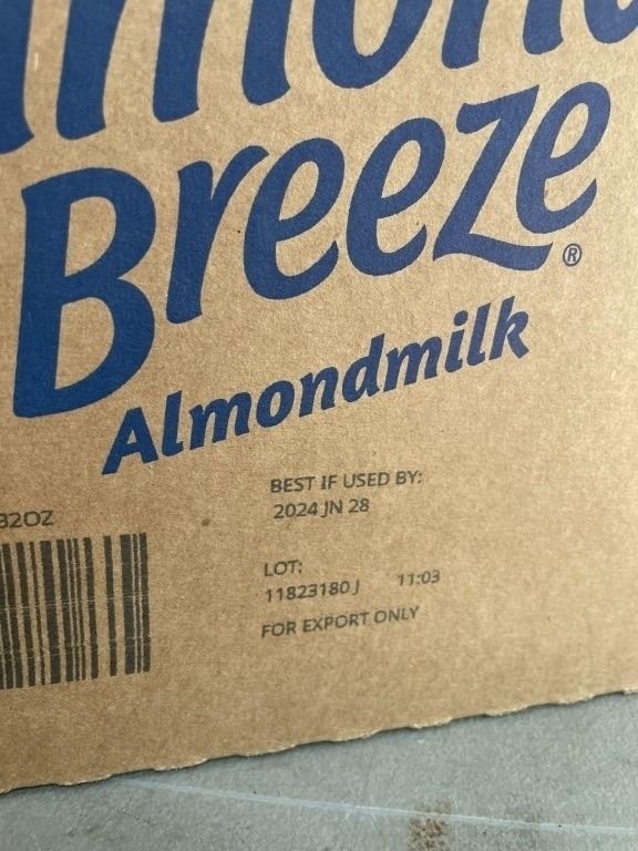 2 CASES ALMOND BREEZE COCONUT ALMOND BLEND UNSWEETENDED MILK - 12 32OZ CARTONS PER CASE, 24 CARTONS TOTAL, TOTAL RETAIL $79, EXPIRES 2024-06-28