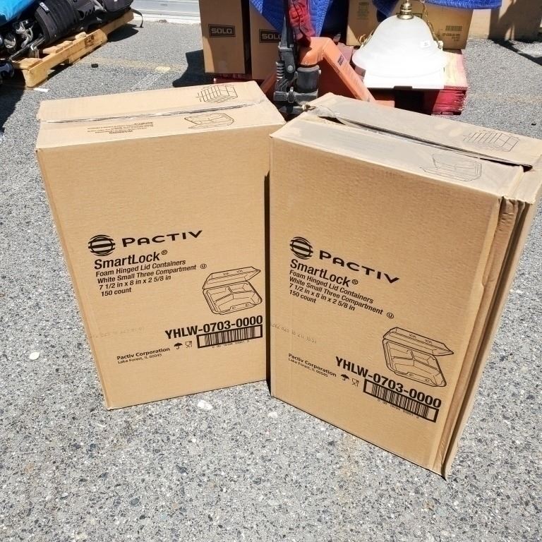 2 CASES OF NEW PACTIV SMART LOCK HINGED TO GO CONTAINERS 300 TOTAL