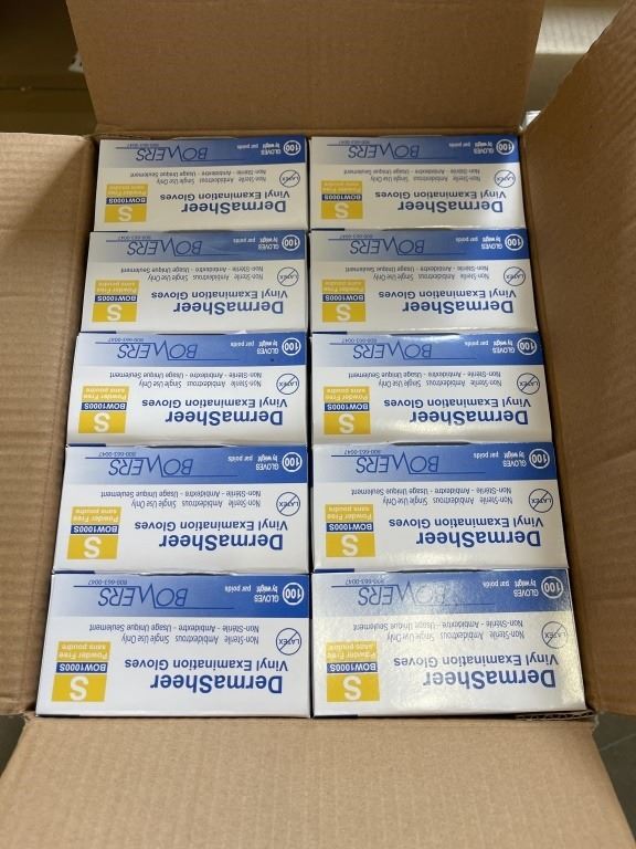 2 CASES OF VINYL GLOVES, 10 BOXES OF 100 IN EACH CASE, SIZE SMALL