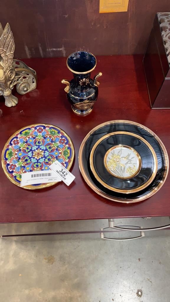2 CHOKIN PLATES, MADE IN GREECE VASE, AND SPANISH PLATE
