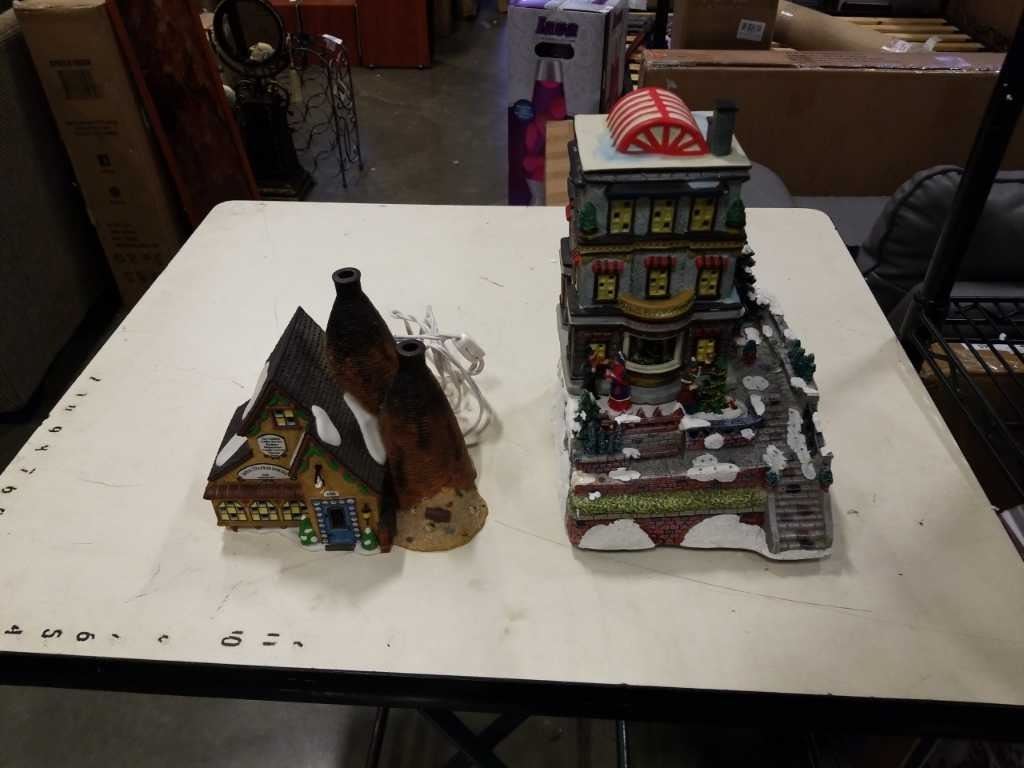 2 CHRISTMAS VILLAGE HOUSES, ILLUMINATED