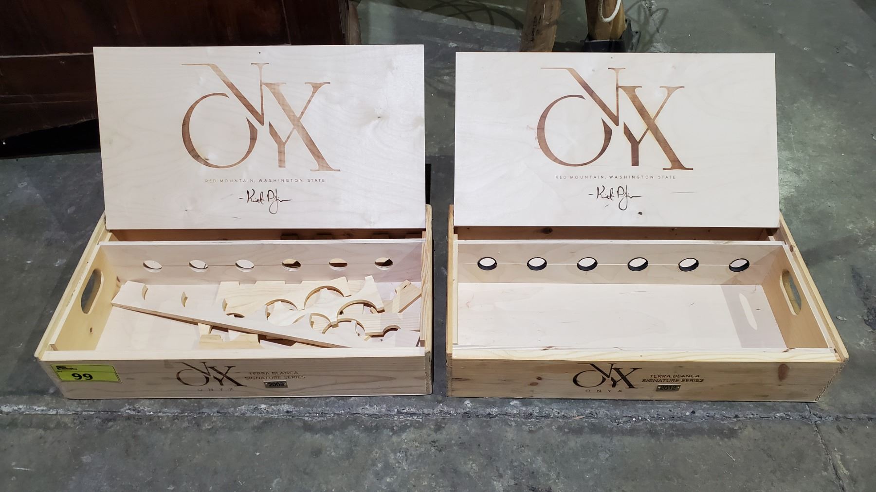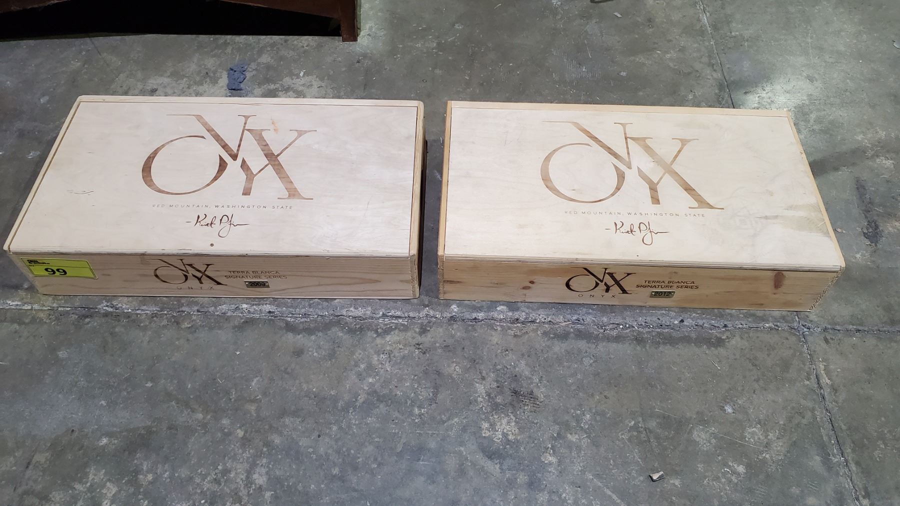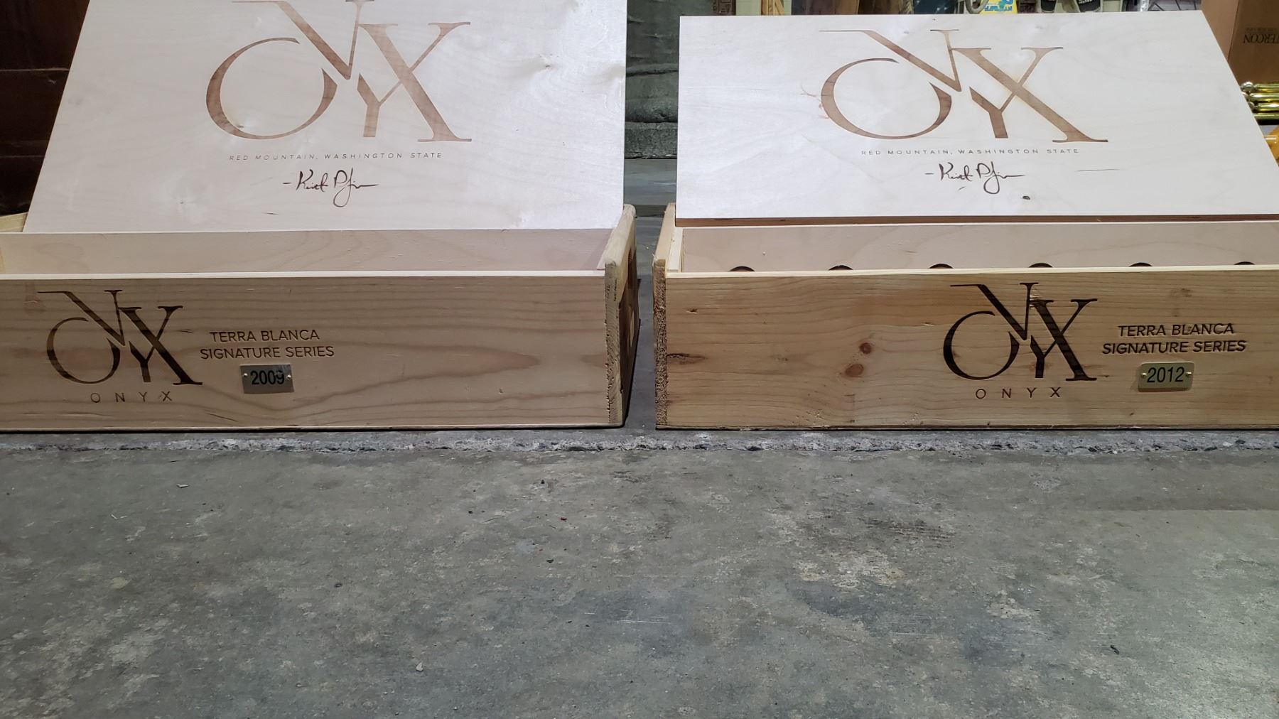 2 CNYK TERRA BLANCA SIGNATURE SERIES 2009 & 2012 WOOD WINE BOXES