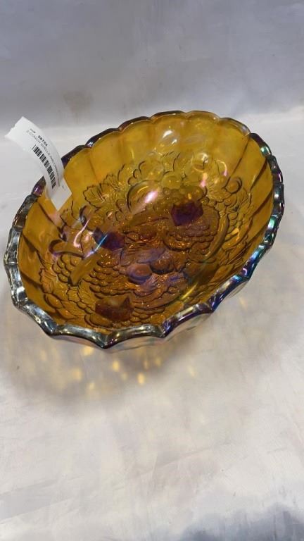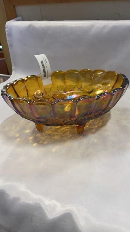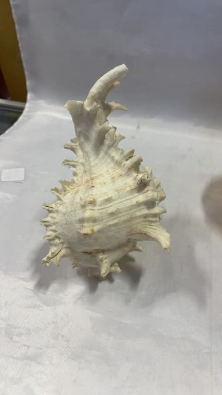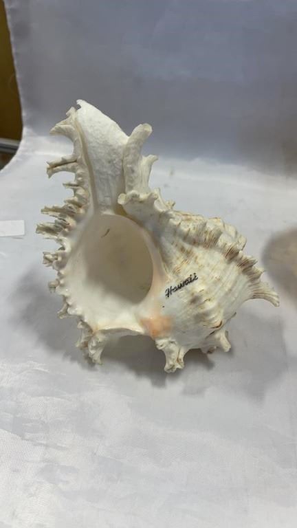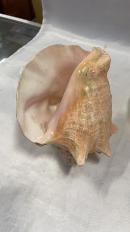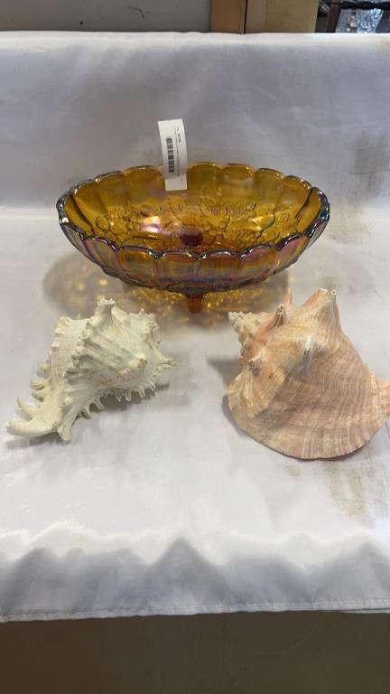 2 CONCH SHELLS AND CARNIVAL GLASS FOOTED DISH