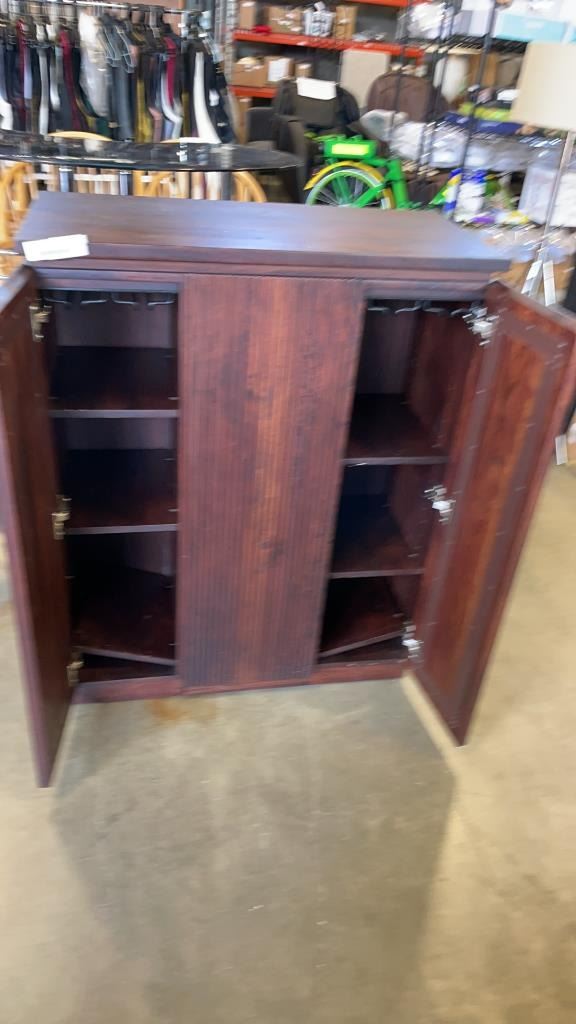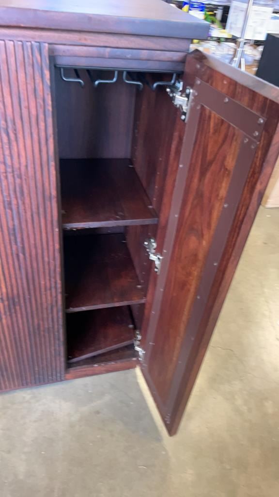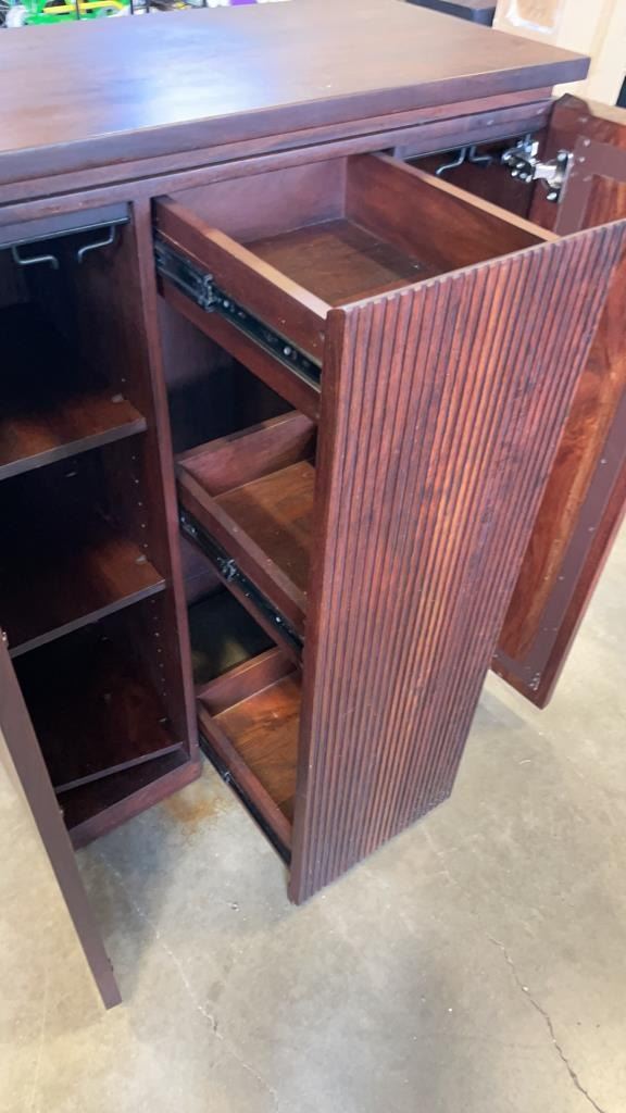 2 CUPBOARD BAR UNIT WITH SLIDE OUT MIDDLE DRAWER