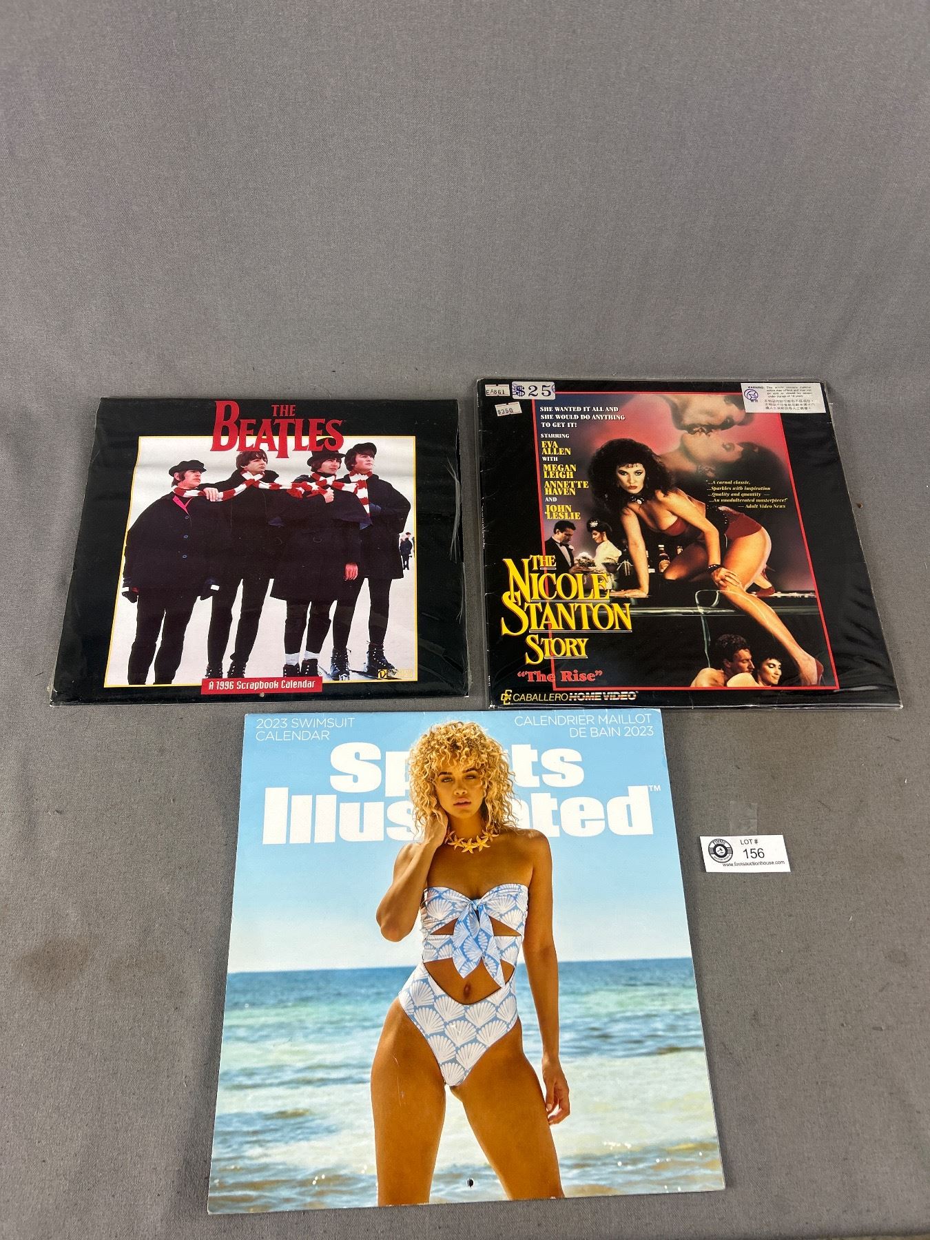 2 Calendars - 2023 Swimsuit, 1996 (Sealed) The Beatles & LaserDisc "The Nicole Stanton Story: The Rise"