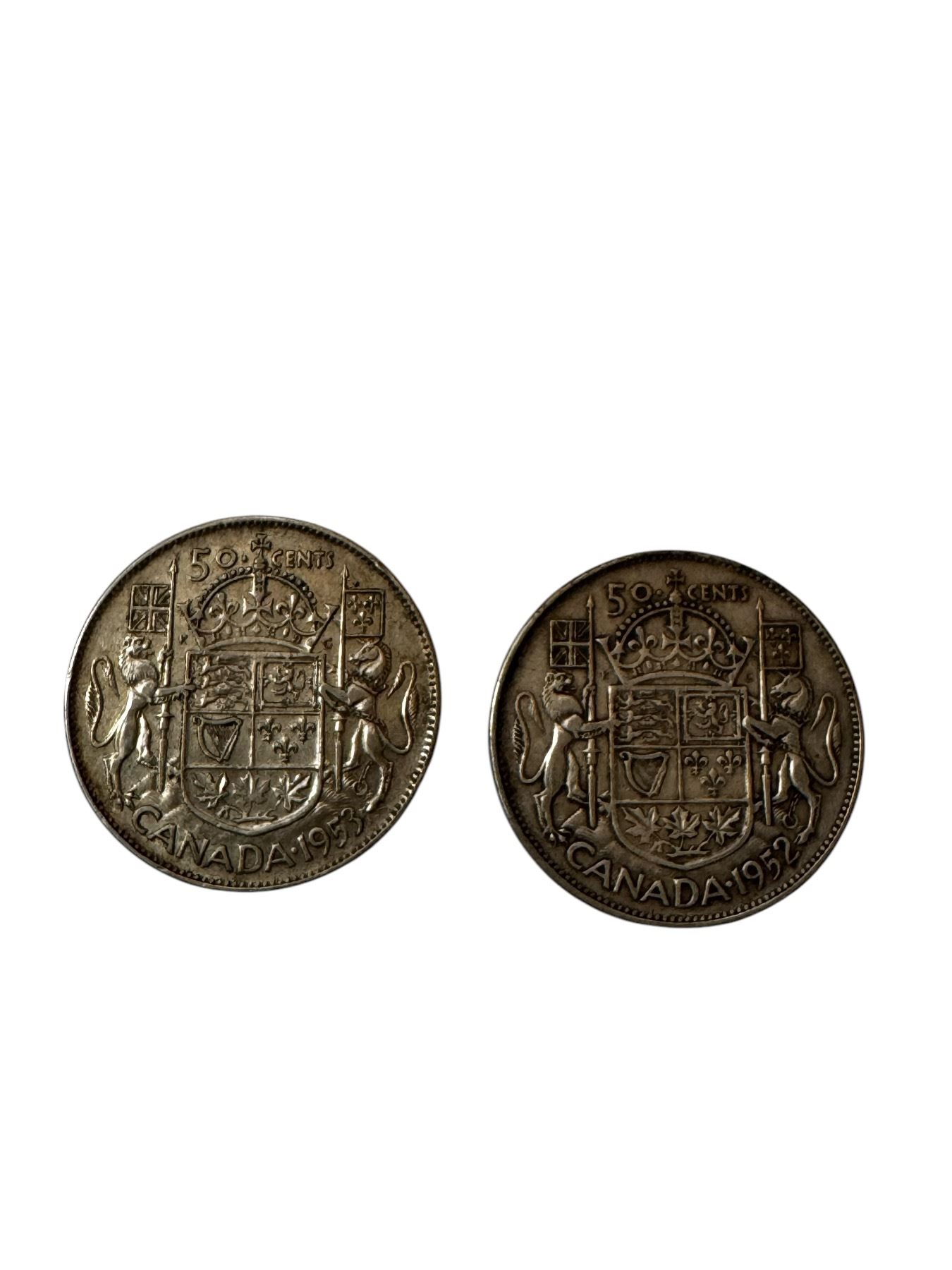 2 Canadian Silver 50 Cent Coins: 1952 & 1953