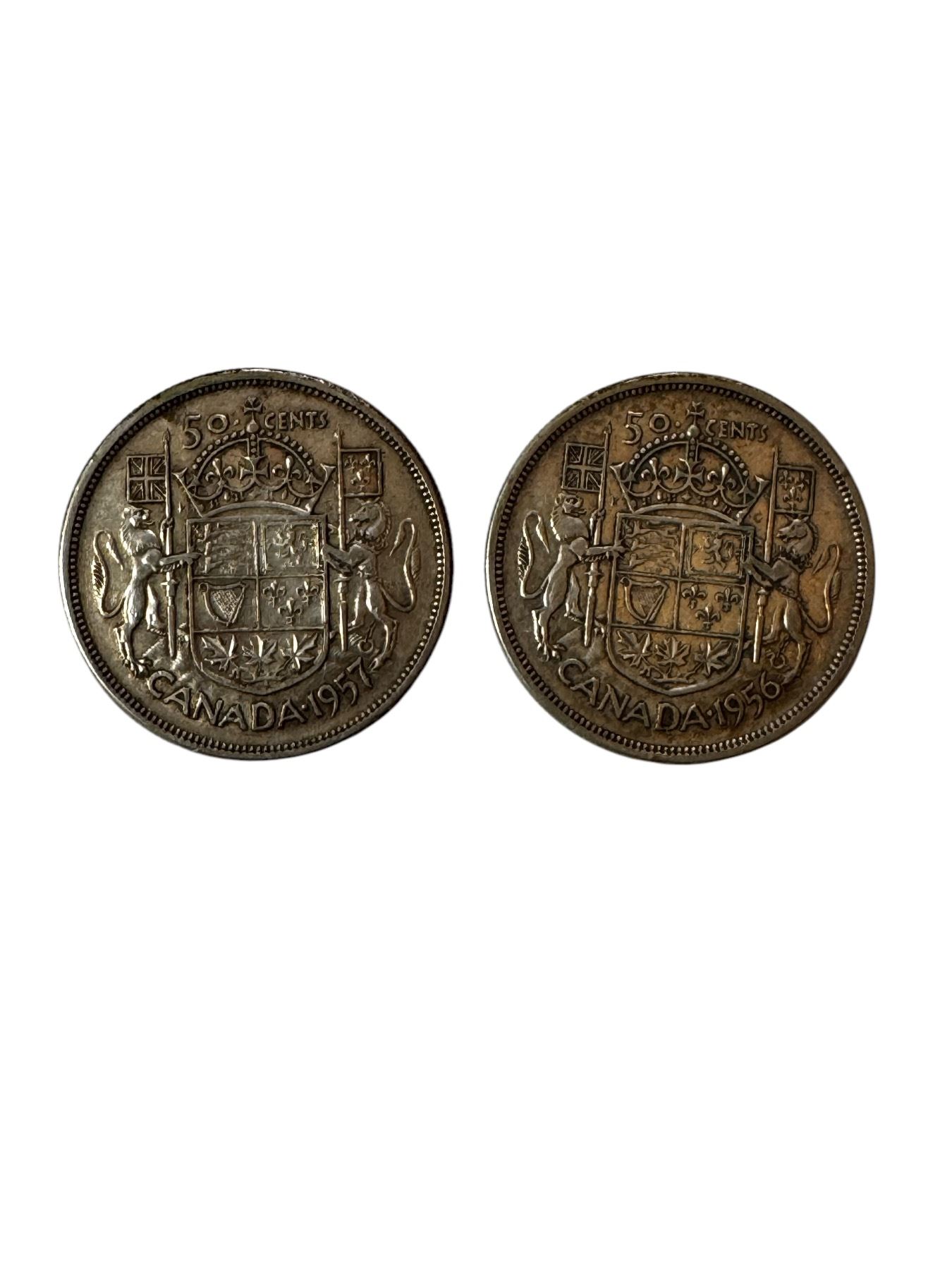 2 Canadian Silver 50 Cent Coins: 1956 & 1957