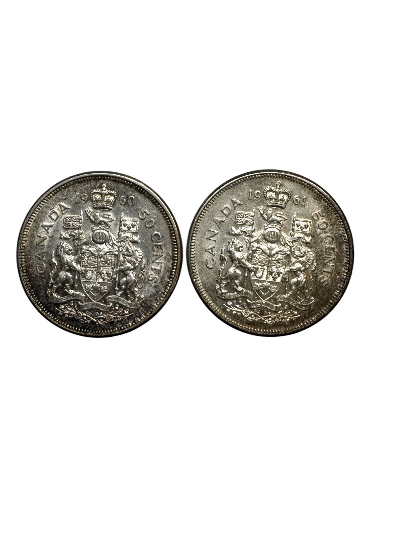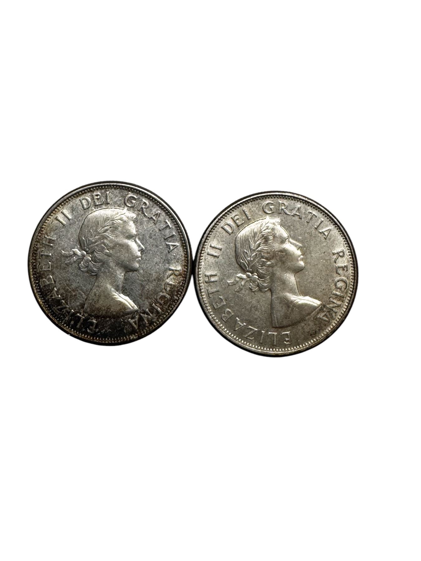 2 Canadian Silver 50 Cent Coins: 1960 & 1961